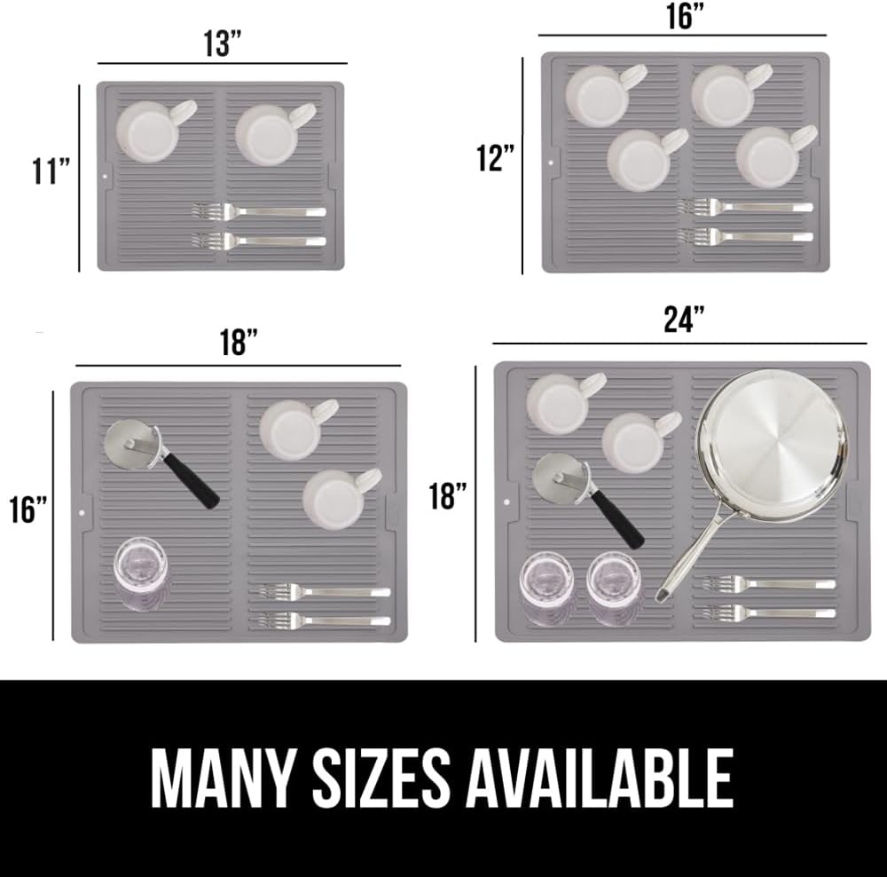 GORILLA GRIP 100% BPA-Free Patented Silicone Dish Drying Mat for Kitchen Counter, Water Catching Ribbed Design, Easy Clean Waterproof Sink Liner, Heat Resistant, Fits Under Rack, 16x12 Inch, Gray