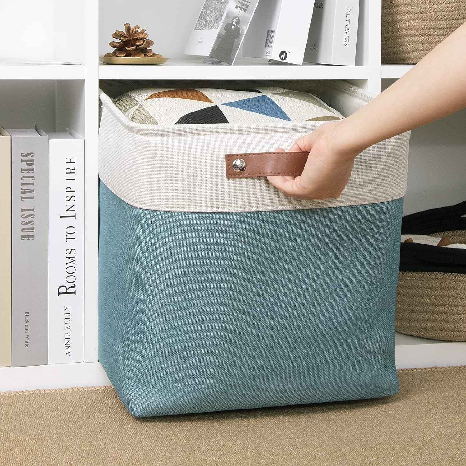 DULLEMELO Cube Basket for Storage, Collapsible Fabric Cube for Organizing, Storage Cube for Closet, Laundry, Nursery, Shelves, Decorative Basket for Gifts Empty (White&Teal)