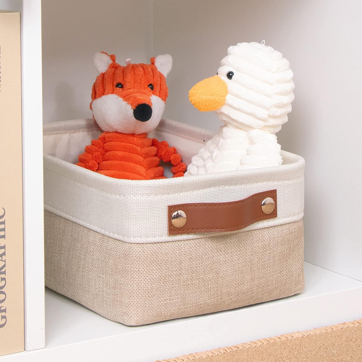 DULLEMELO Small Collapsible Fabric Basket for Organizing, Shelves, Closets, Laundry, Nursery, Decorative Gift Basket (White&Khaki)