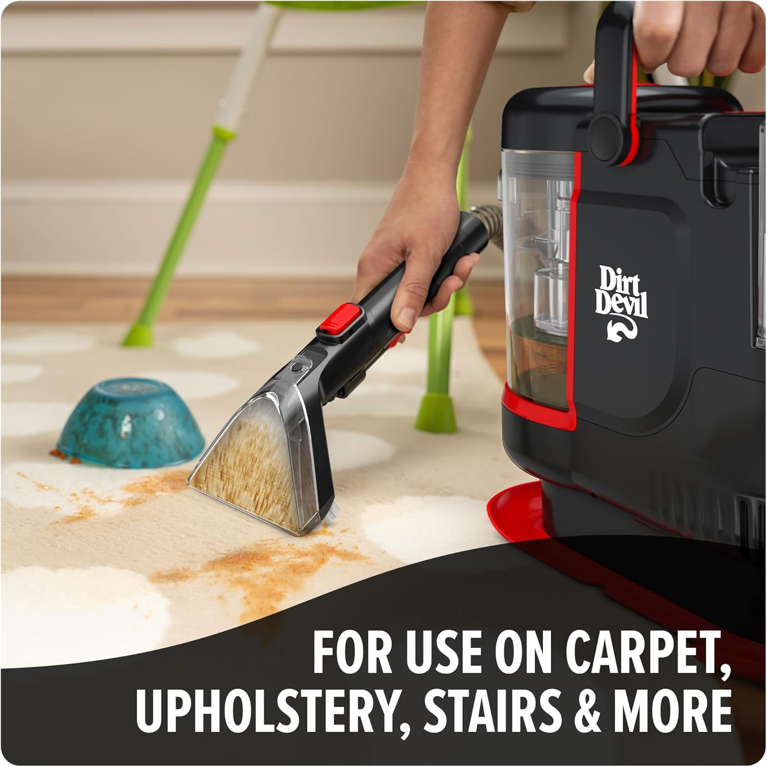 - WHOLE HOME CLEANING: Use this Dirt Devil carpet spot cleaner solution on carpet, car interiors, stairs, upholstery and more. Designed for portable spot cleaners.
