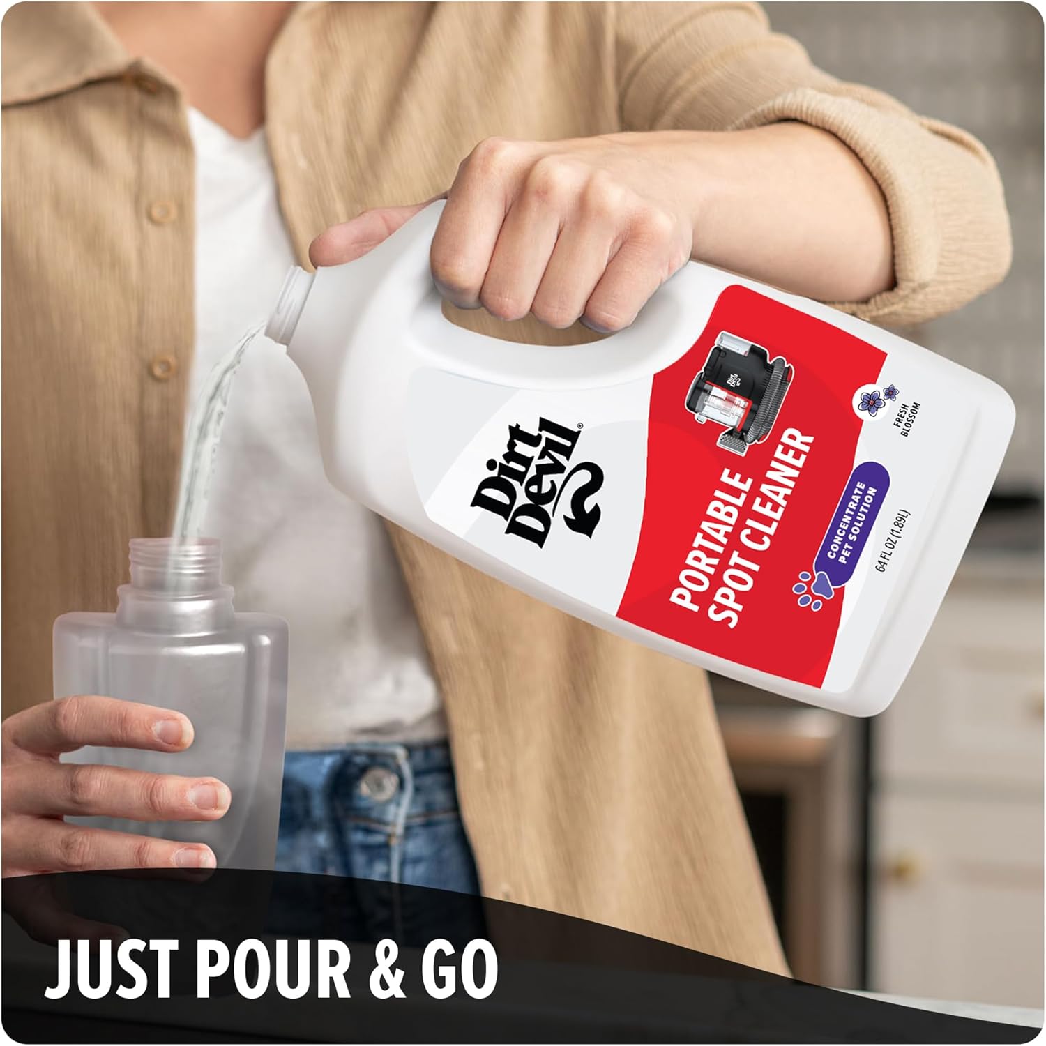 Dirt Devil Pet Portable Spot Cleaner Solution, 64 oz., Fresh Blossom Scent, Upholstery and Carpet Shampoo Solution, Eliminates Pet Messes and Odors, Pair with Dirt Devil Portable Spot Cleaners