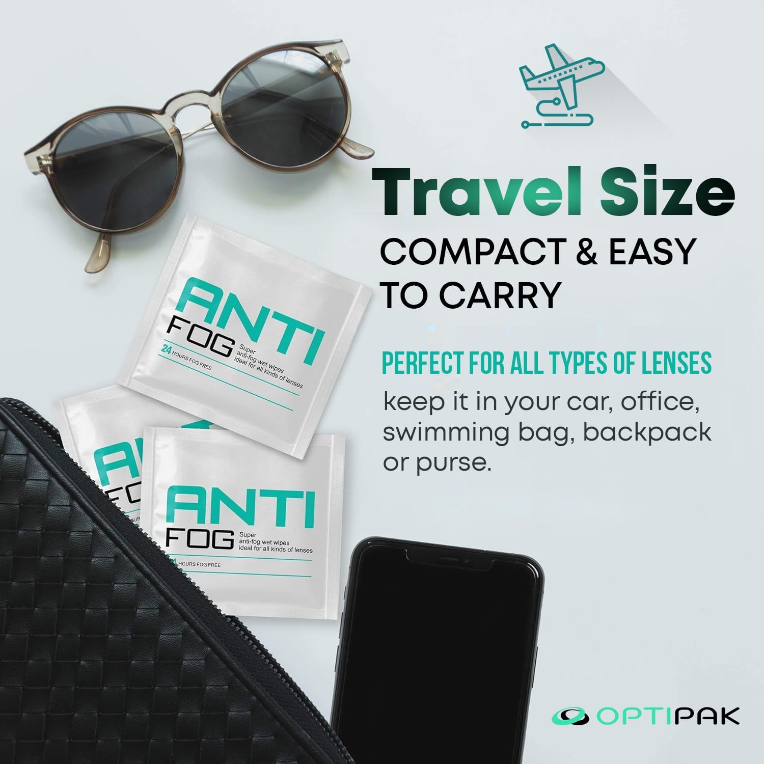 - Pre-Moistened Anti Fog Lens Cleaner Wipes: Optipak's premoistened glasses wipes clean and treat eyeglasses, sunglasses, goggles, and safety eyewear. Each individually wrapped wipe ensures clear, fog-free lenses in seconds.