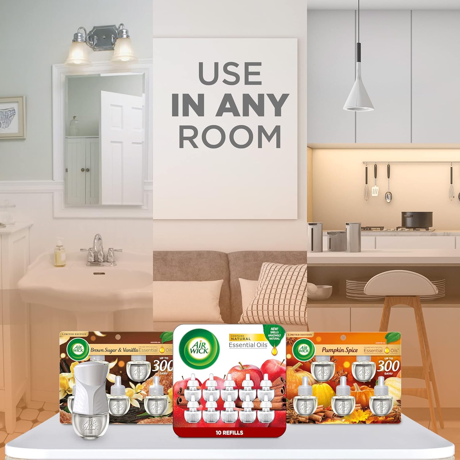 Air Wick Plug in Scented Oil Refill, 5ct, Bonfire and Crisp Fall Air, Essential Oils, Air Freshener Fall Scent, Fall décor