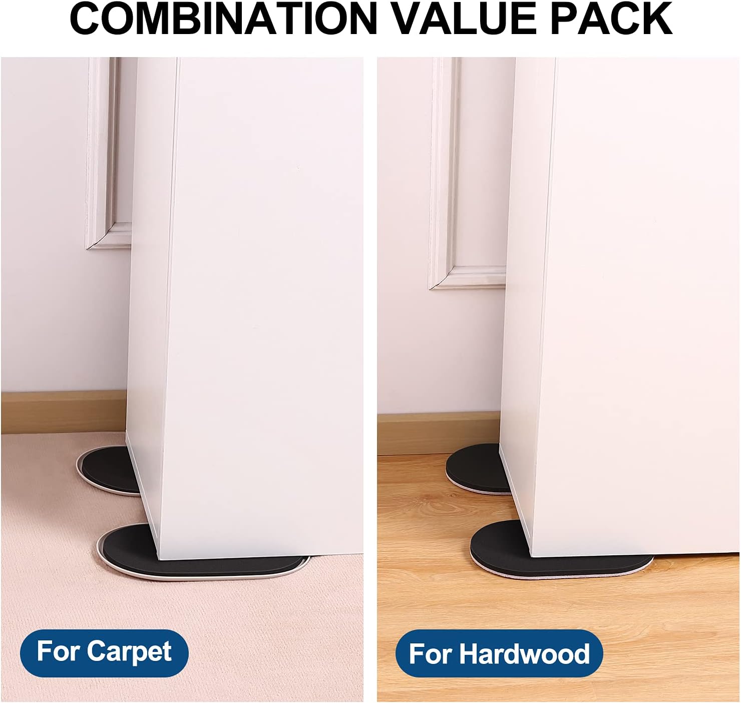- ☛【Easy to Use】- Just tilt the furniture, slide a pad under each leg (black grip side up), and push.
