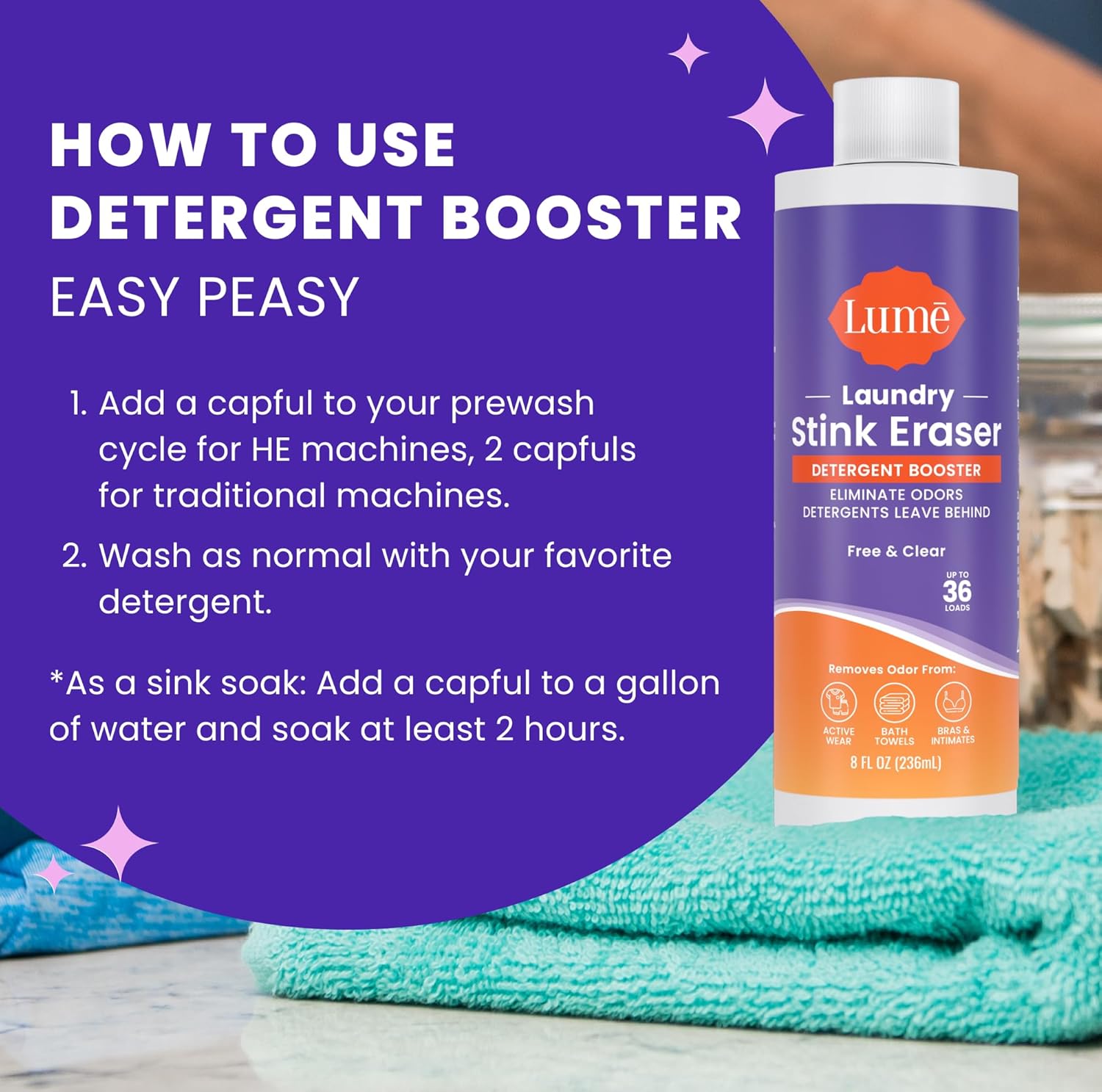 - MAKE YOUR DETERGENT WORK BETTER - Lume Laundry Stink Eraser is a highly concentrated enzyme blend Pretreat Spray that breaks down odor trapped in clothes so your detergent can wash it away.