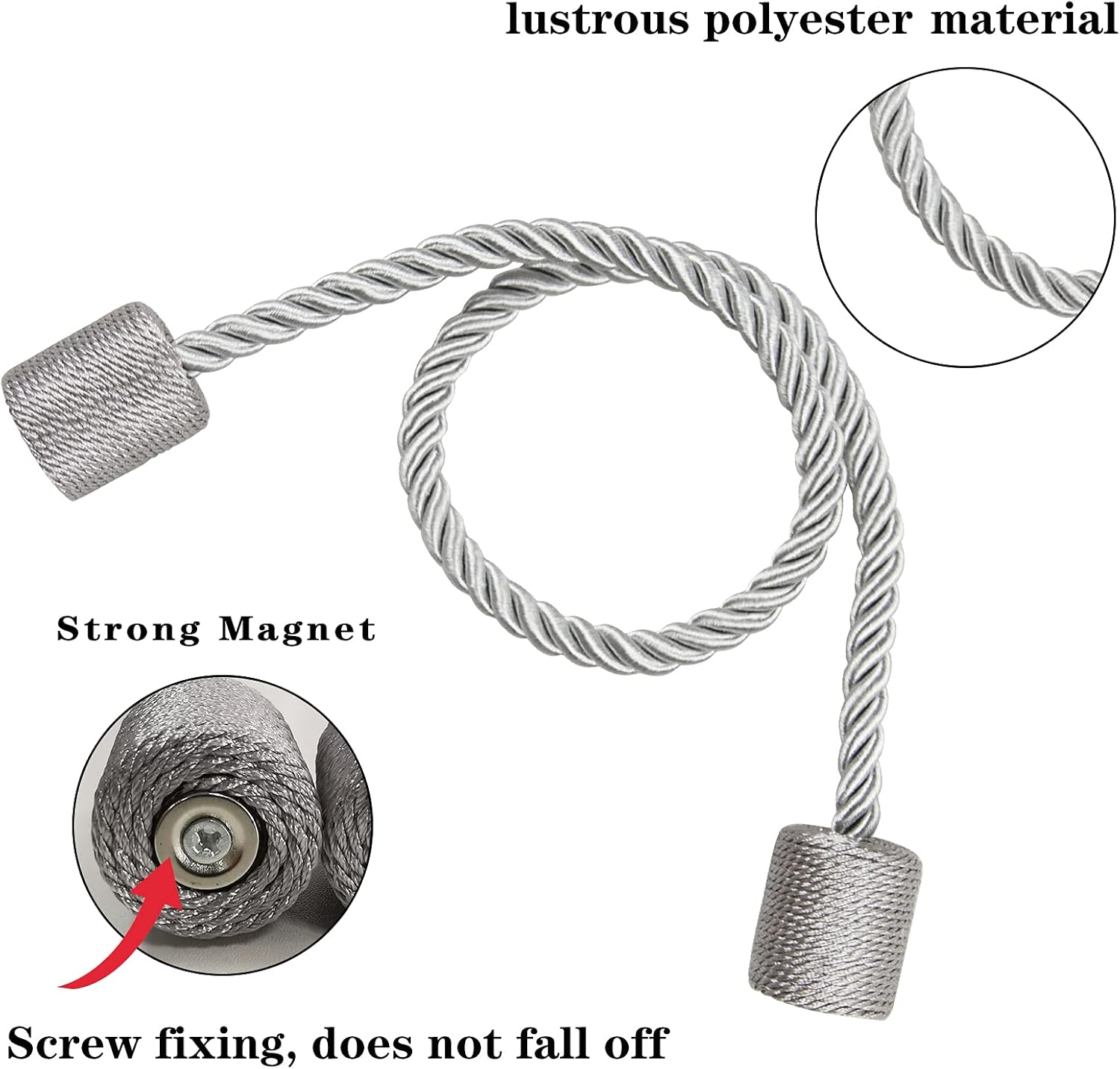 4 Pack Strong Magnetic Curtain Tiebacks Outdoor Elegant Decorative Tie Backs Modern Rope Tiebacks for Drapes Window Curtain Holdbacks for Draperies- Grey