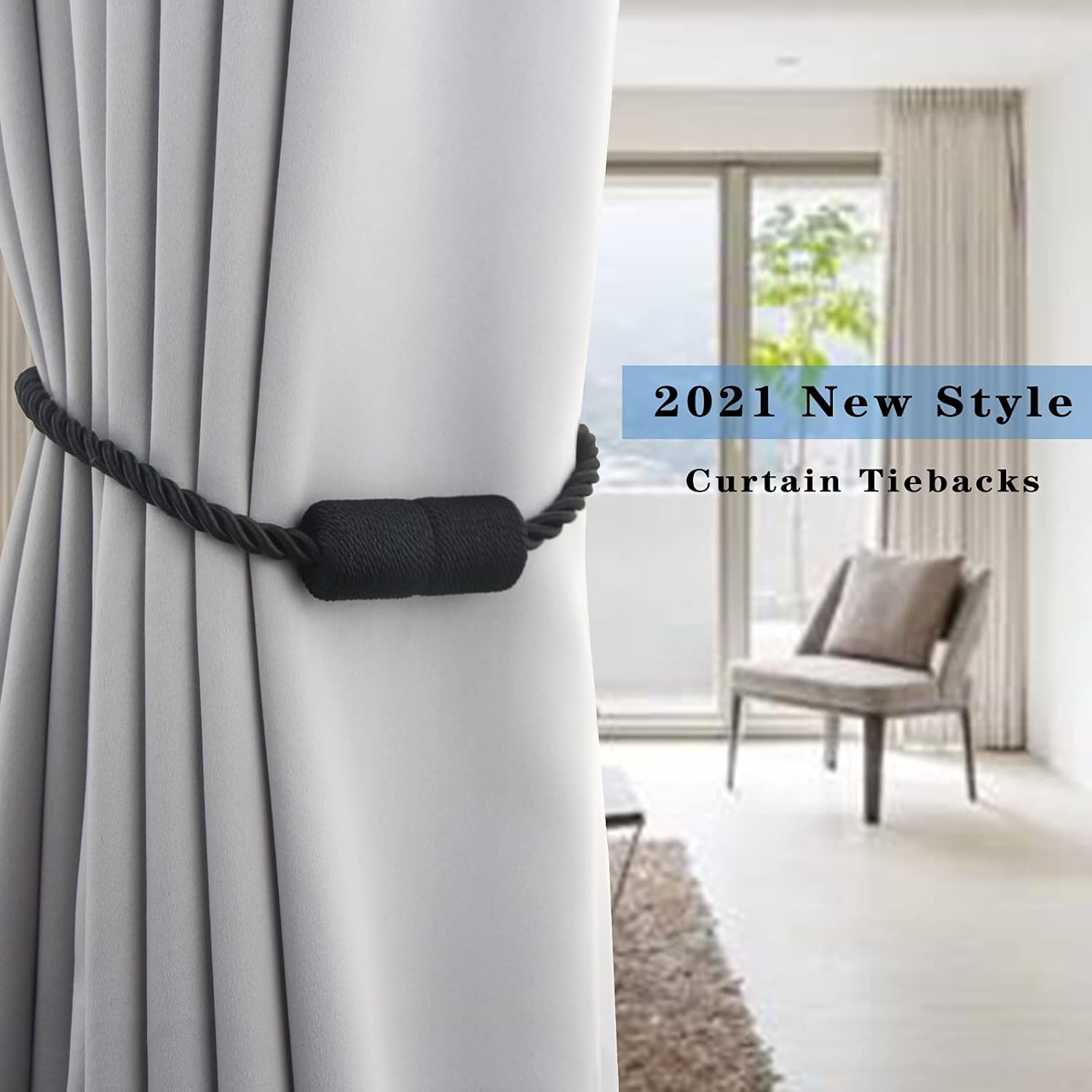 4 Pack Strong Magnetic Curtain Tiebacks Outdoor Elegant Decorative Tie Backs Modern Rope Tiebacks for Drapes Window Curtain Holdbacks for Draperies- Black