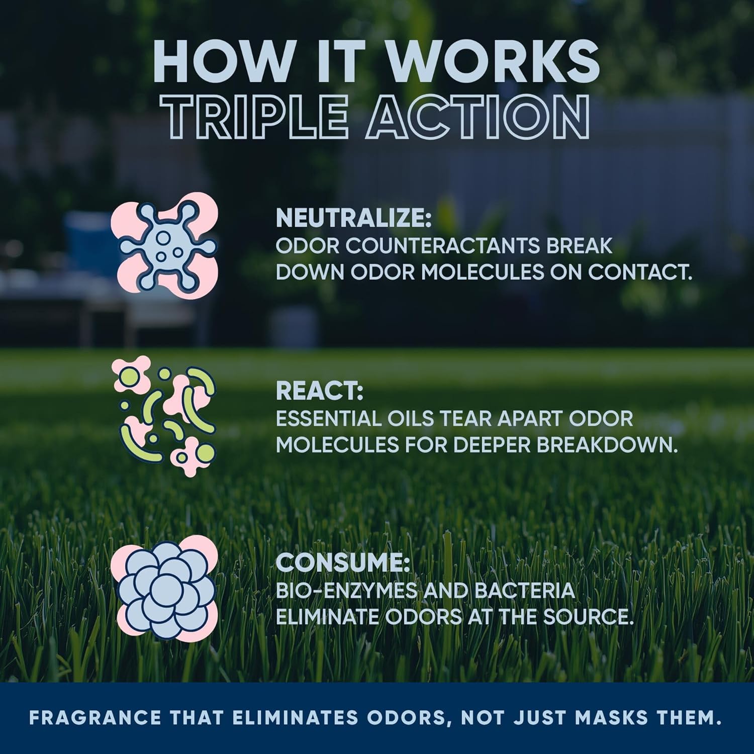 - Multi-Purpose: No job is too big or small for this solution; whether you have an apartment patio with no yard hose access (use Eco Strong Outdoor Odor Eliminator Spot Treat) or a large yard, we have you covered.