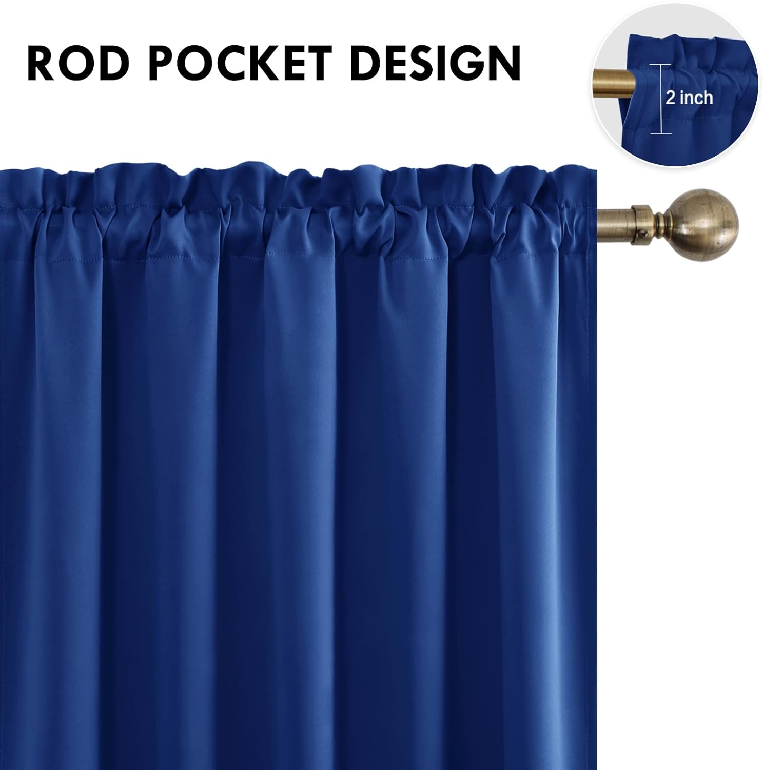 DWCN Blackout Curtains for Bedroom – Rod Pocket Thermal Insulated Noise Reducing Noise Reducing Drapes for Living Room, W 60 x L 63 Inch, 2 Panels, Classic Blue