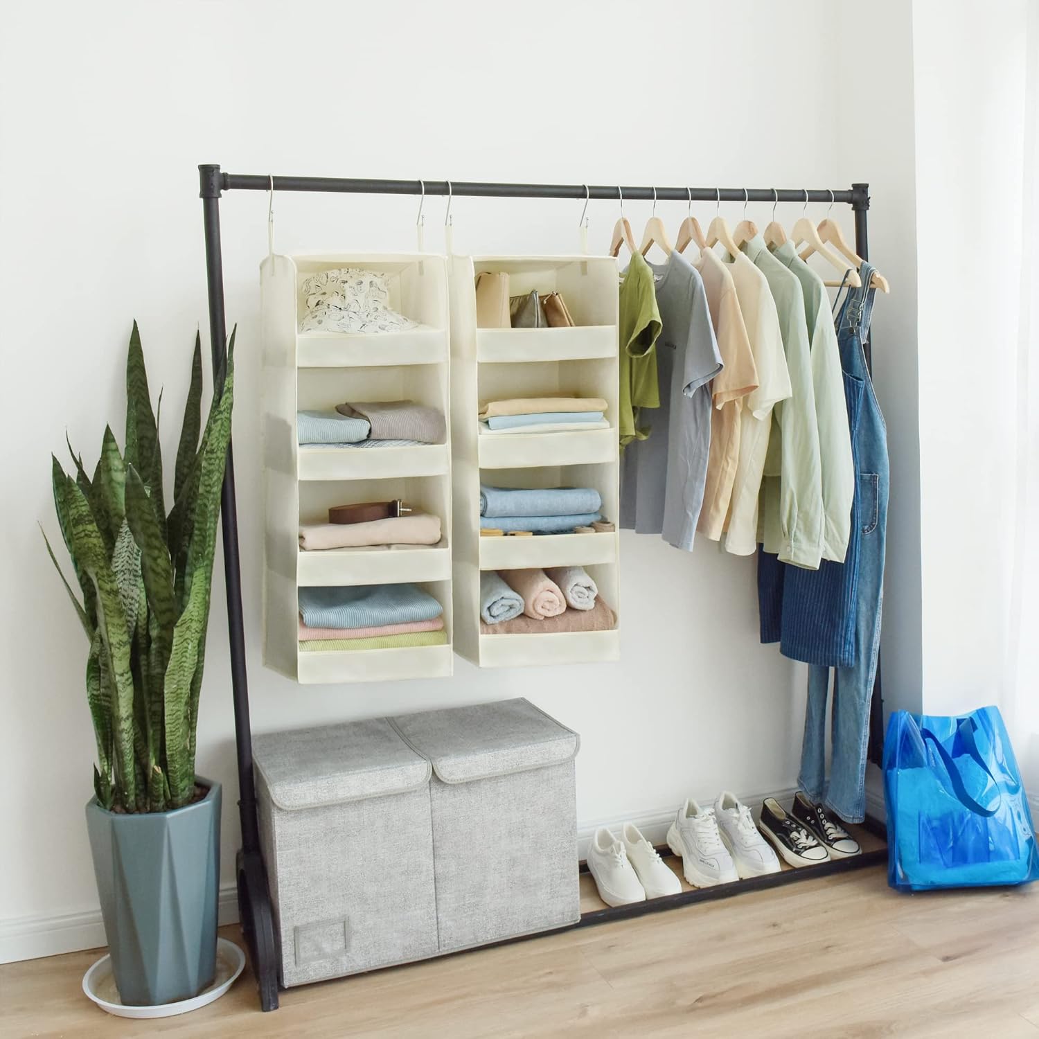 GRANNY SAYS 4-Shelf Hanging Organizer, Closet Hanging Shelves, Space Saver for Bedroom & Living Room, Beige, 2-Pack