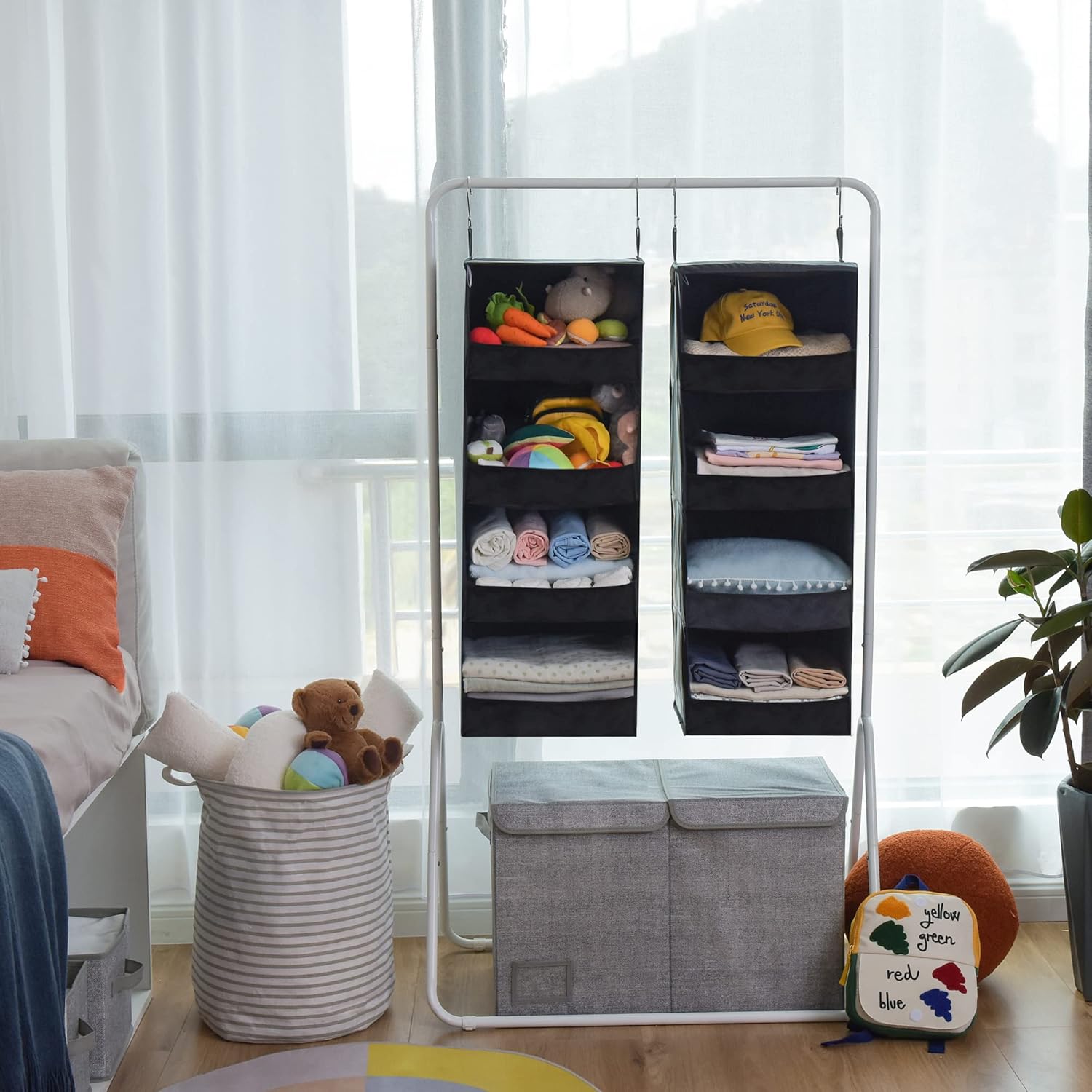 GRANNY SAYS 4-Shelf Hanging Organizer, Closet Hanging Shelves, Closet Hanging Storage Organizers, Organization for Bedroom, Living Room, Baby Nursery, Camper Accessories, Black, 2-Pack