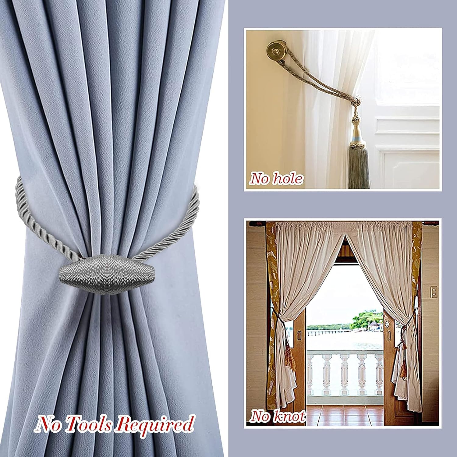 - [Upgrade Powerful Magnetic] Our magnetic curtain tiebacks magnets use high-end new imported nickel-plated magnets, with strong corrosion resistance and durability, more magnetic than ordinary magnetic curtain tiebacks, and do not rust and not lose color. The rope of curtain tie adopts upgrade thickened solid polyester yarn, which is not only durable, but also not easy to wear or pilling.