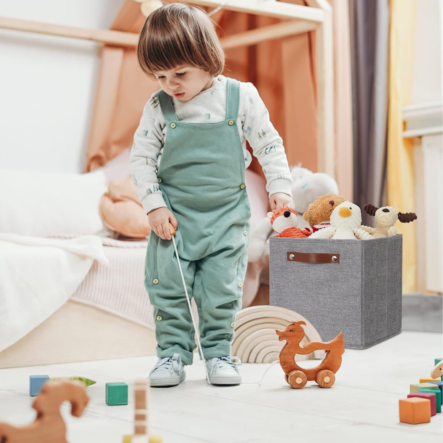 DULLEMELO 11x11 Cube Collapsible Fabric Storage Bins for Shelf Organizing, Toy Square Bins, Kids Clothes Closet Baskets Storage, for Bedroom, Living Room, Dorm(Gray-4 Pack)
