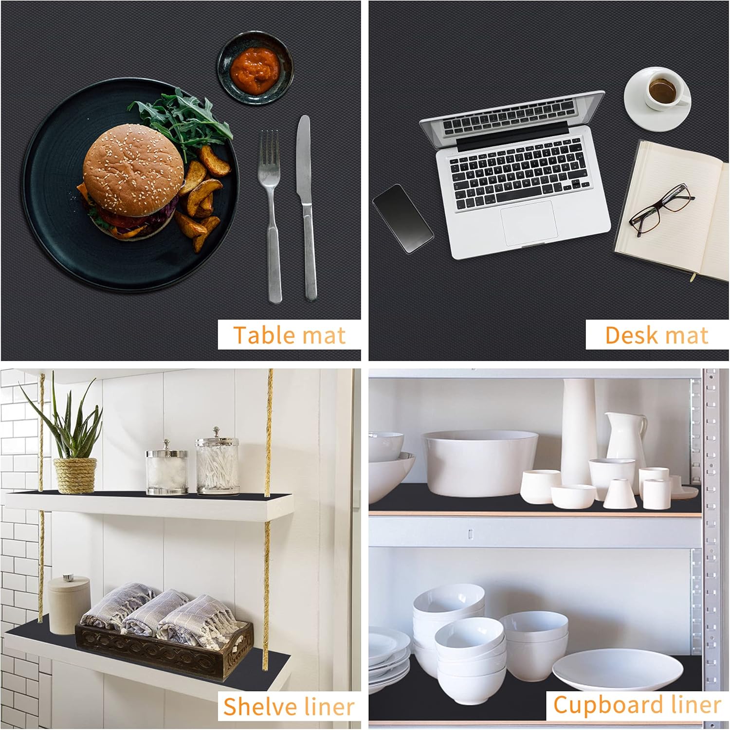 - VERSATILE USES: This multipurpose mat is suitable for different using situations. It can be used as a kitchen liner to ensure the tidy of your kitchenware. Or it can be used as a refrigerator mat to keep the freshness of food and fruits. Otherwise this liner can also be used as a cabinet liner, a drawer liner, a cupboard liner, a desk liner, a shelve liner etc.