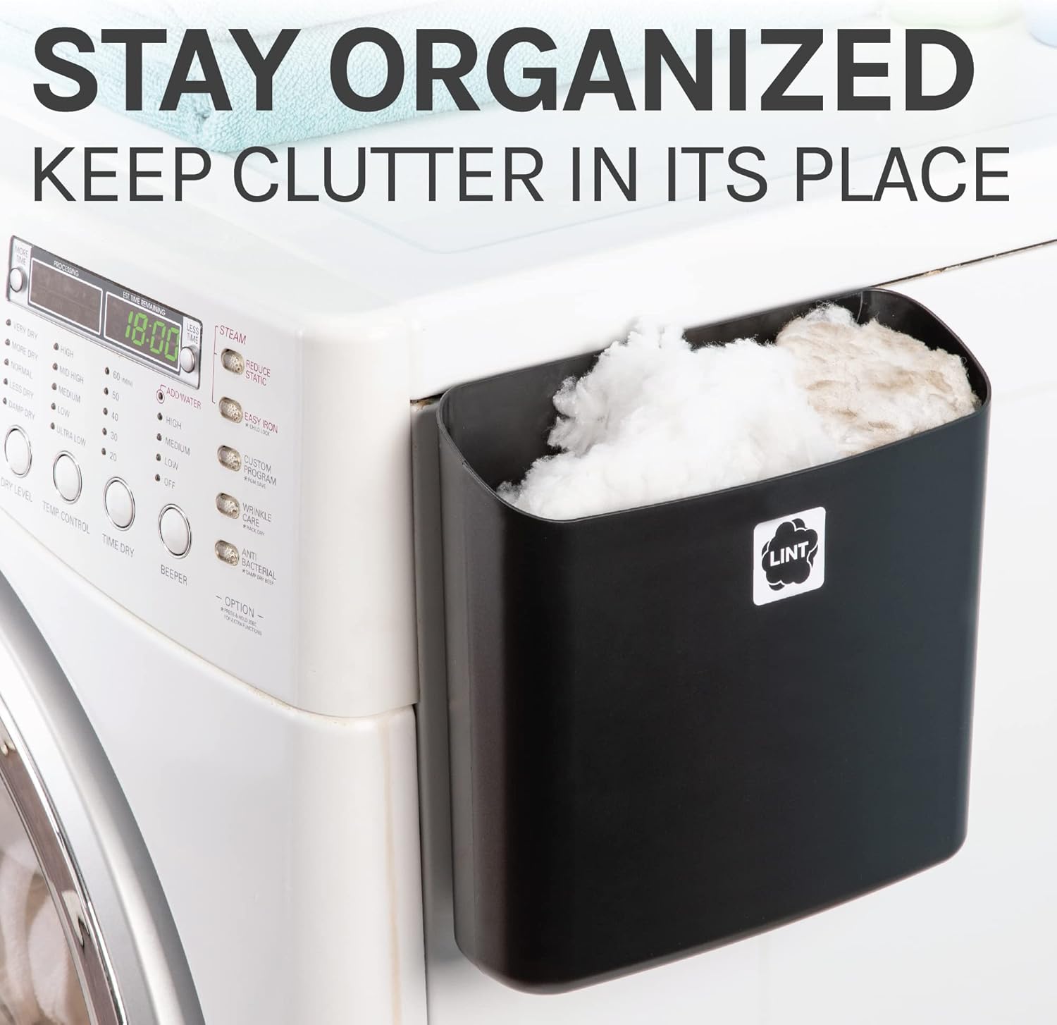 - The set of two lint bin/organizers come in a stylish matte black finish and work well with any laundry room, kitchen, workroom, or office décor.