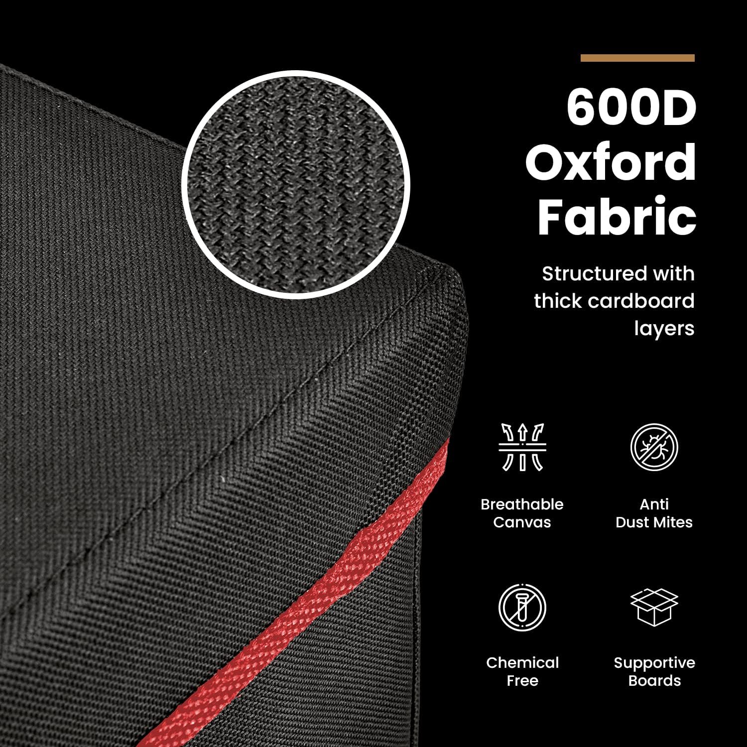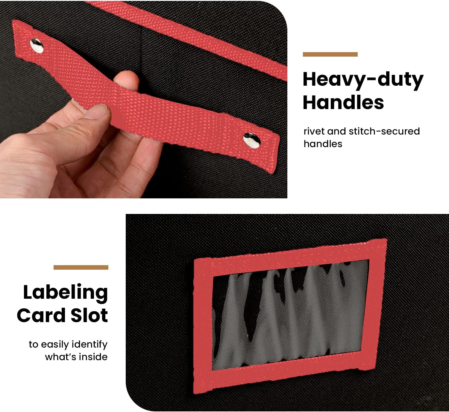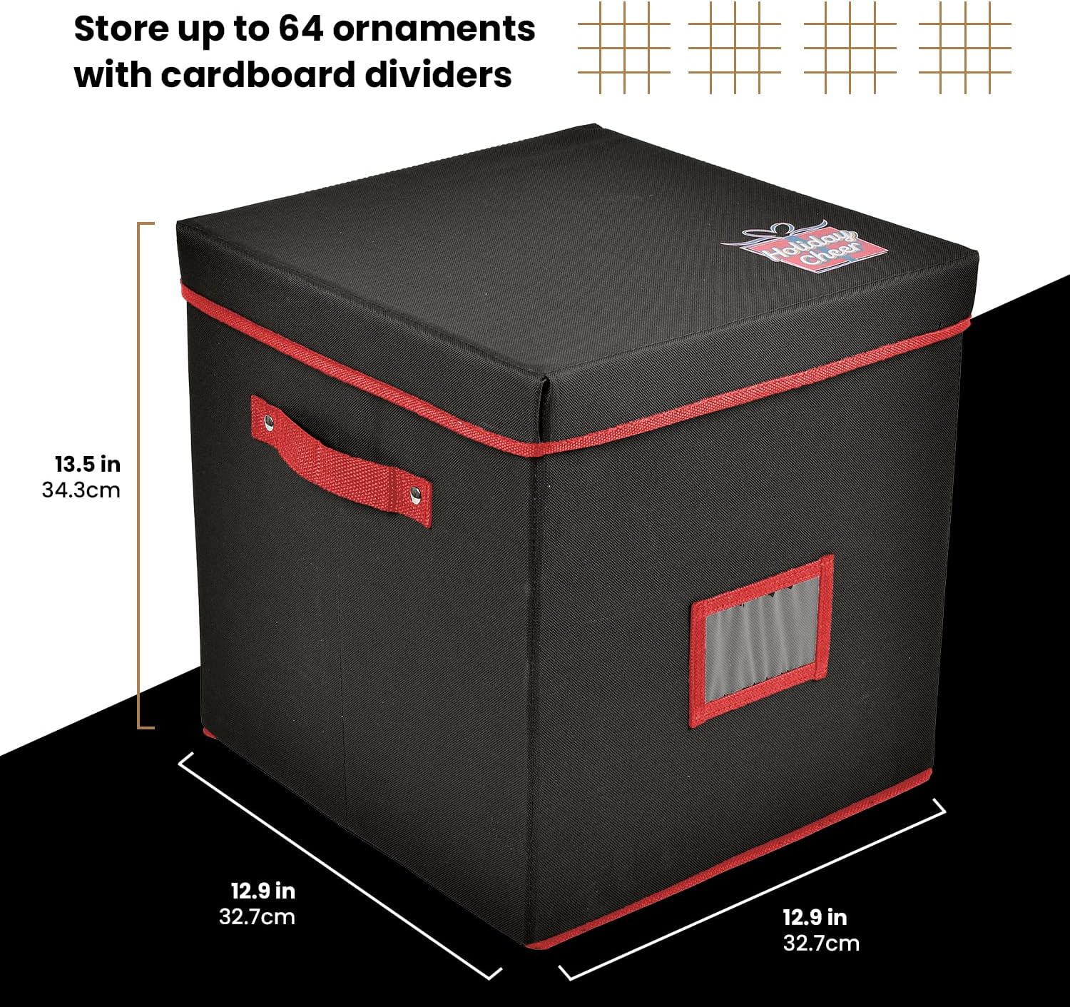 - STURDY CONSTRUCTION – This Christmas ornament storage is constructed of durable 600D oxford fabric with cardboard sides and includes built in handles. This Holiday Cheer Christmas storage box is perfect for holiday ornament storage with a transparent card slot for easy labeling.