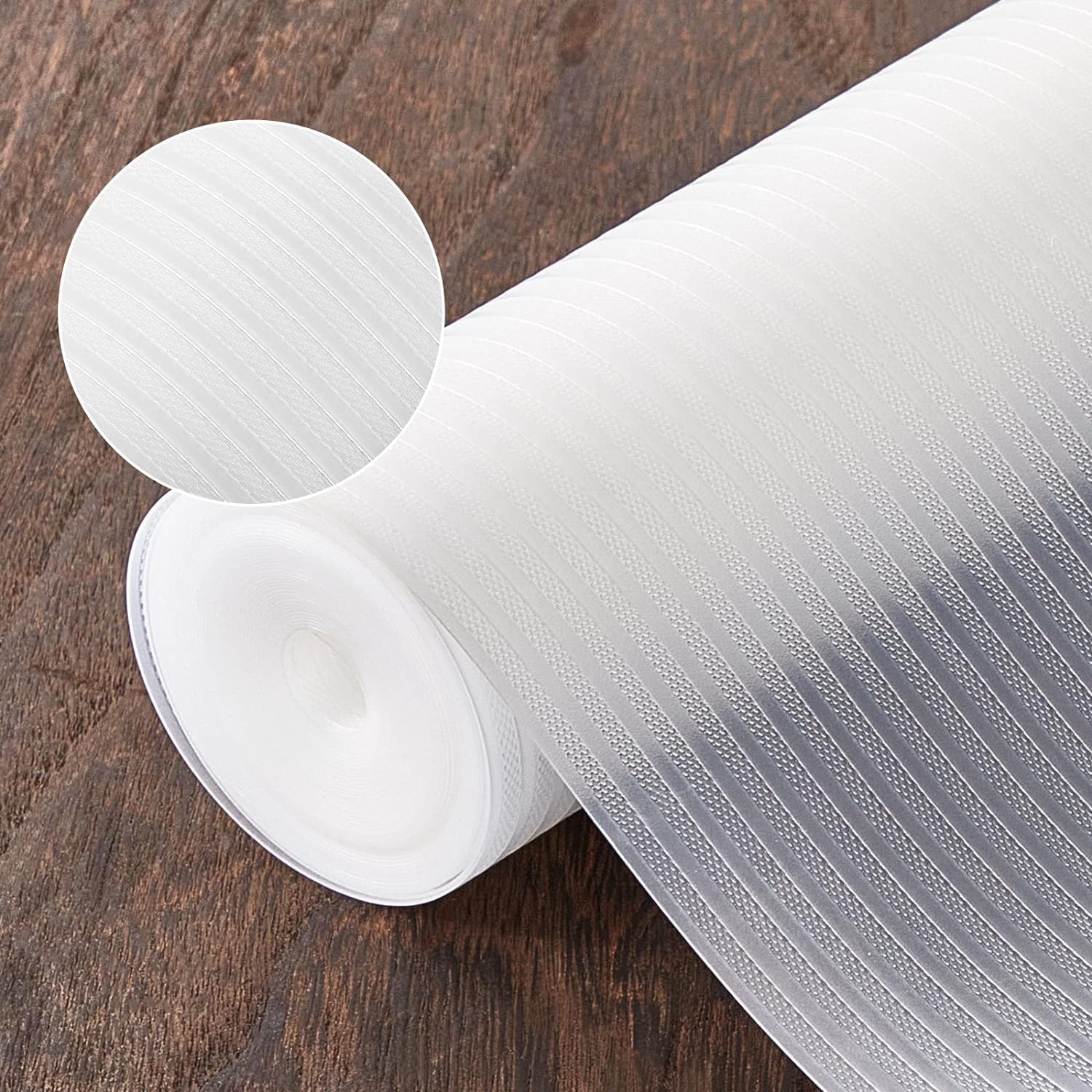 - 【REDUCE SLIPPING】: The clear shelf liner one side designed with durable long stripe pattern, which prevent items from slipping on cabinet shelves or drawer. Another non-adhesive smooth surfaced side can be easily removed and leave no residue.