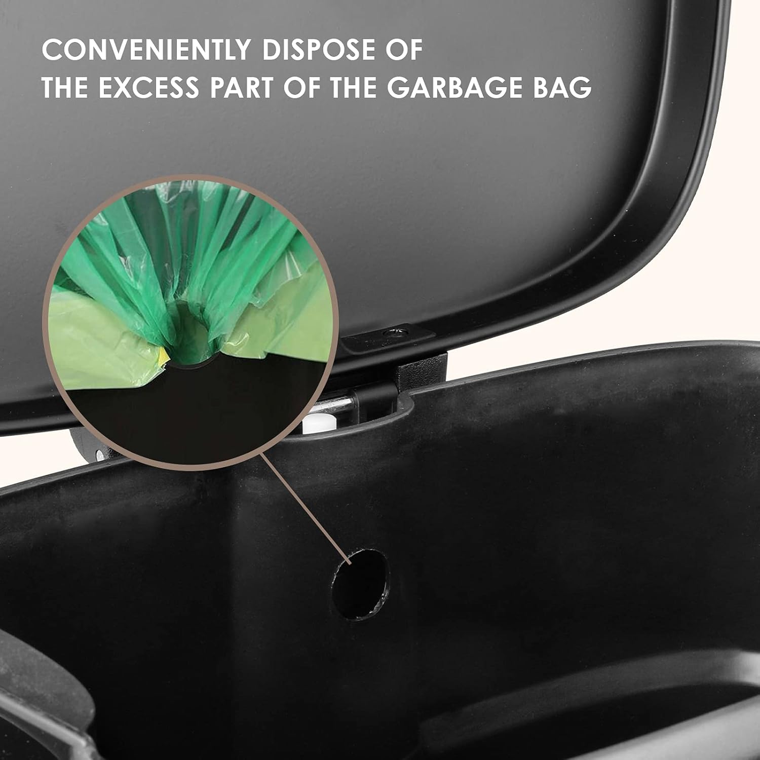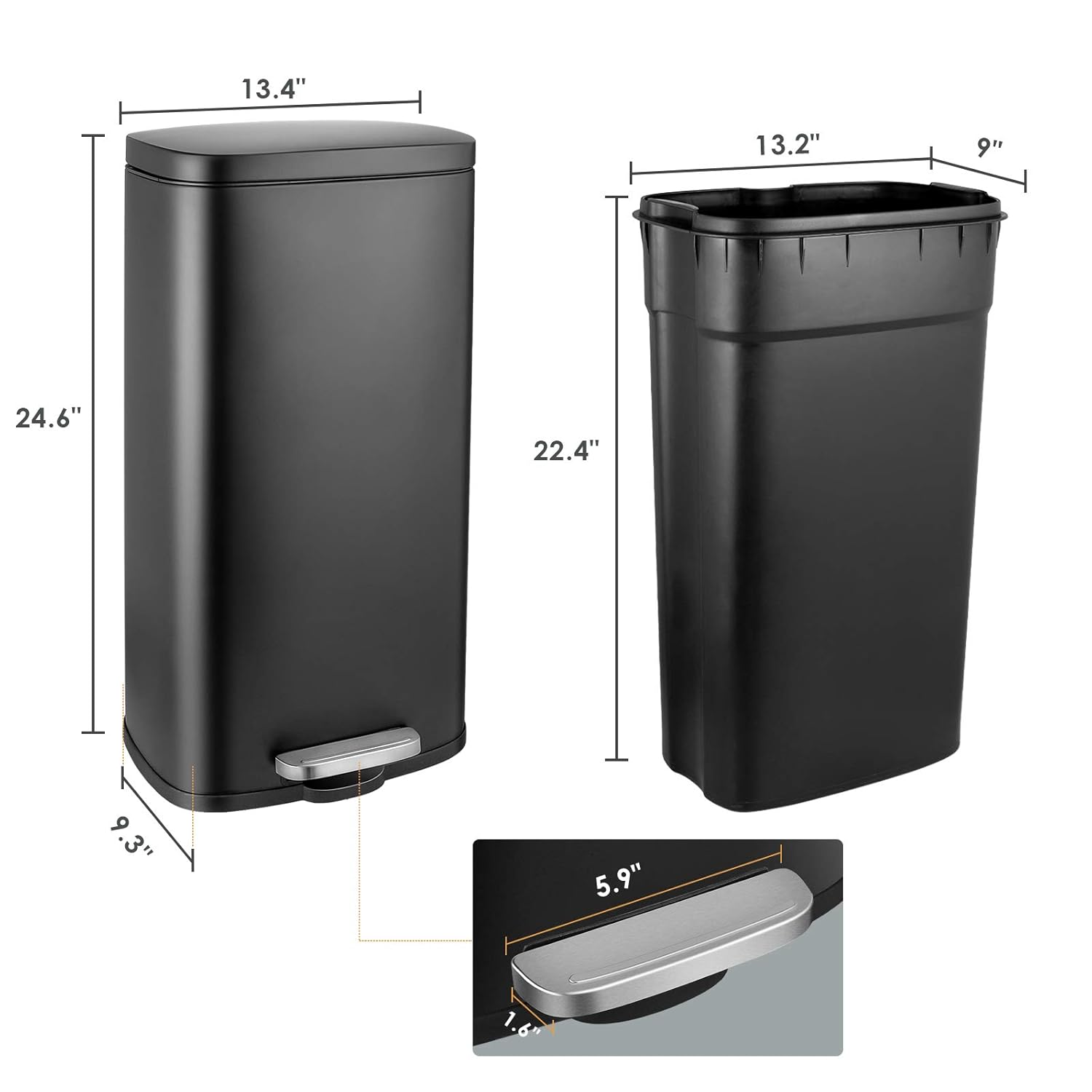 - 【REMOVABLE INNER BARREL】Kitchen trash can is equipped with a detachable plastic inner bucket, the straight shape can hold more trash and facilitate the replacement of trash bags. Inner barrel has no ends and gaps, which is very convenient for daily cleaning.When the garbage bag accidentally bursts and overflows, you can easily lift the removable inner bucket for cleaning.