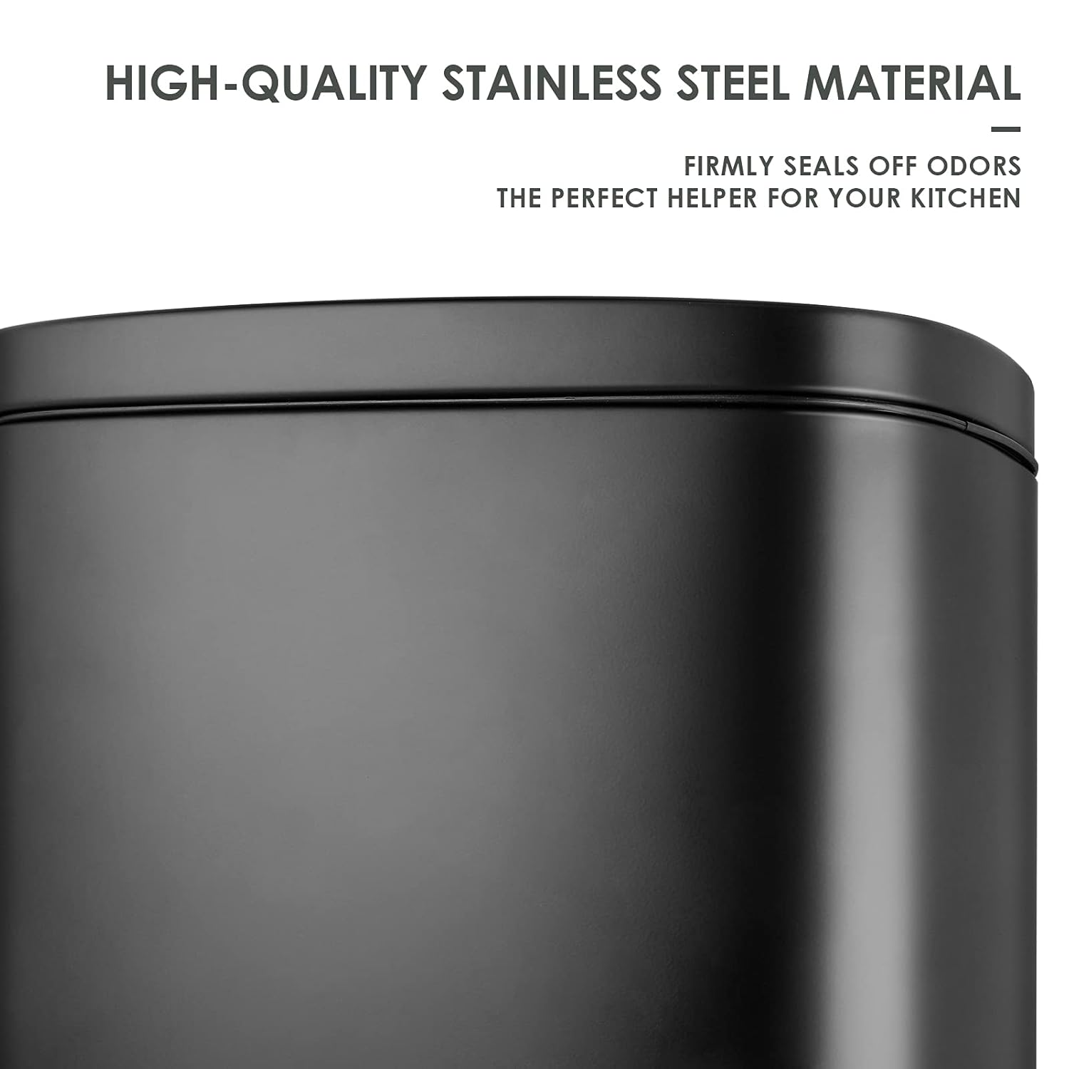 - 【MUTE CLOSING&AIRTIGHT】Kitchen Dustbin adopt ABS hydraulic deceleration technology, the lid of the trash can will fall silently without annoying popping sound, suitable to be placed in the study and bedroom. Airtight lid will seal off the odor firmly, so you don’t have to worry about the unpleasant smell emitted by the kitchen garbage in summer.