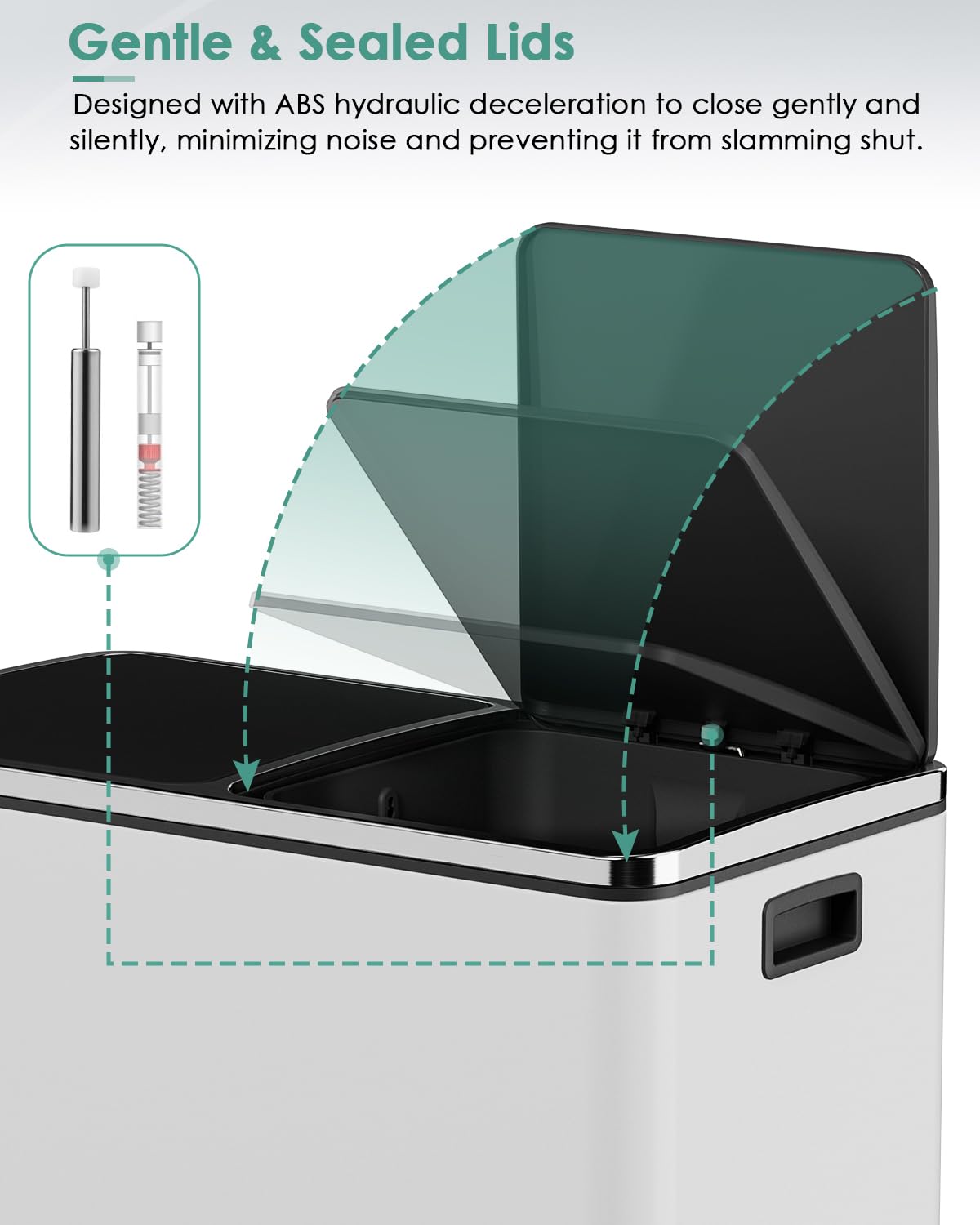 - GENTLE CLOSE: Lid of the trash can is designed with ABS deceleration, which effectively reduces the closing noise and does not make a popping sound, putting the trash can in the bedroom is also a good choice.