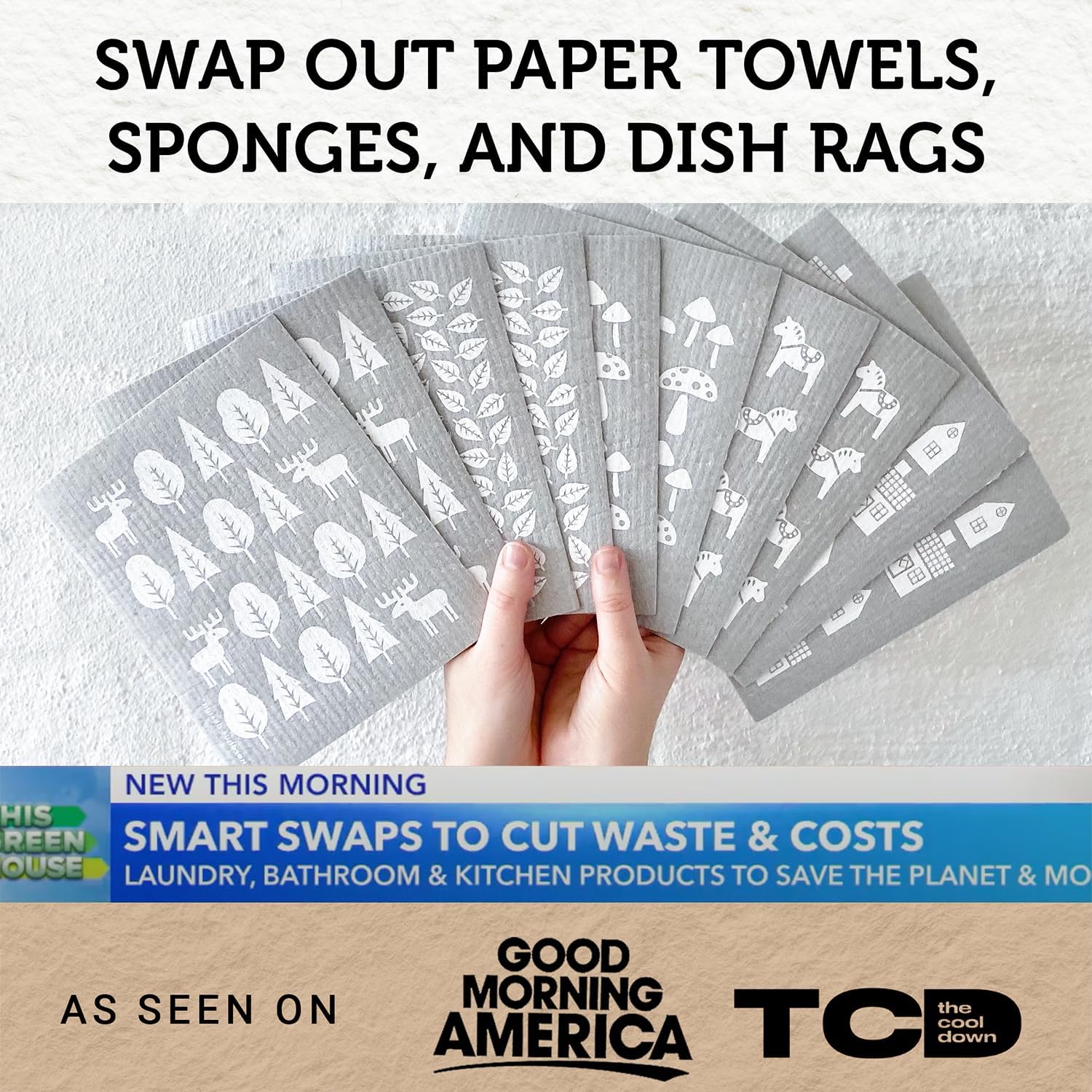 - Replace wasteful paper towels, smelly sponges, and flimsy dish rags with game changing reusable Swedish dishcloths that have been used in nearly every household in Sweden since 1949 and have become a global phenomenon! They are reusable, made of natural raw natural materials, and are quick drying, which make them odor resistant. Ten dish cloths replace 150+ rolls of paper towels and each last many months (or even years when rinsed and washed regularly). Give them a try and you will be hooked!