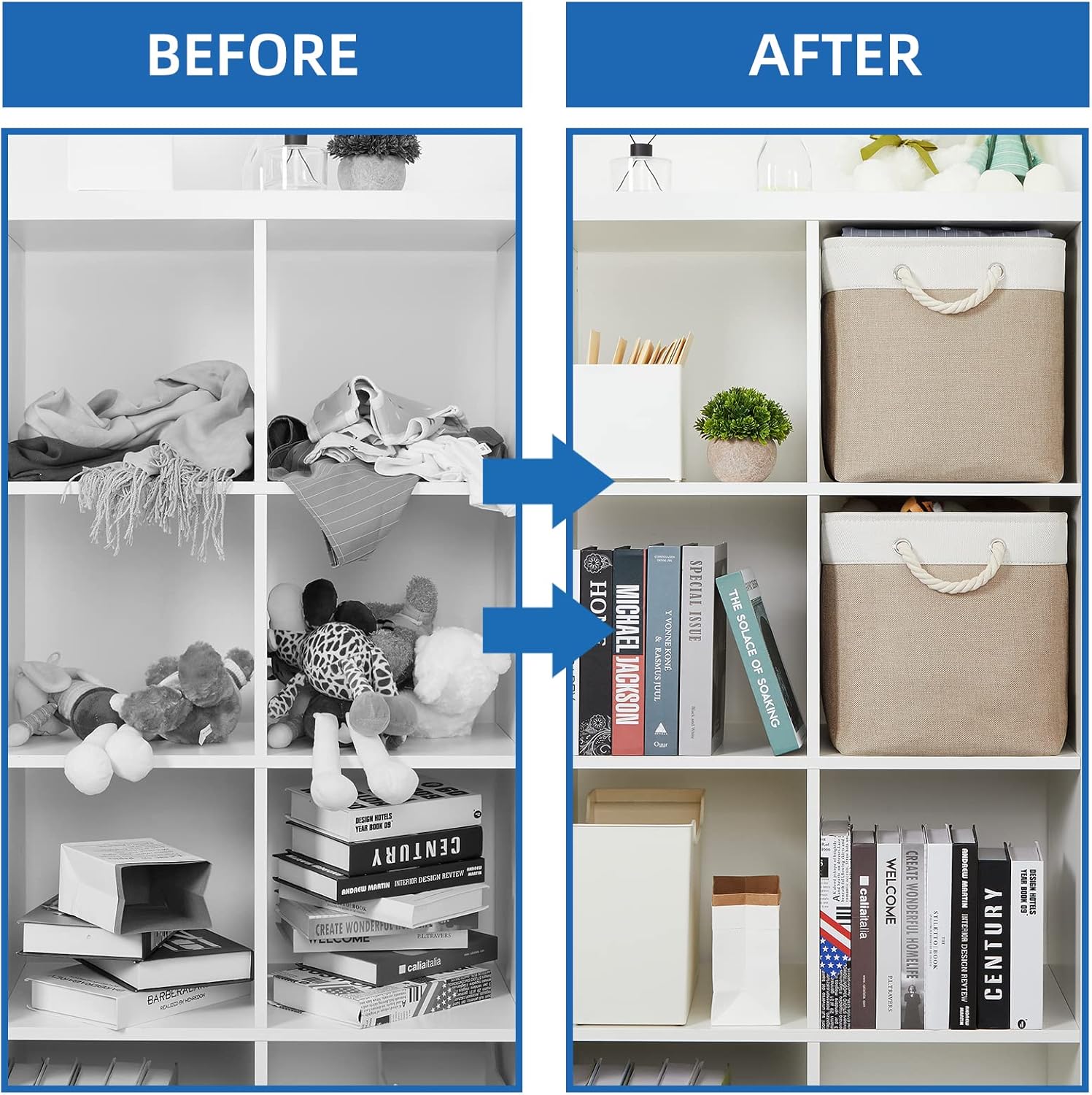 Temary Fabric Storage Baskets 2 Pack Decorative Storage Bins Basket for Gifts Empty Shelf Baskets with Handles for Organizing Home Closet, Towels (White&Khaki,16Lx12Wx12H Inches)