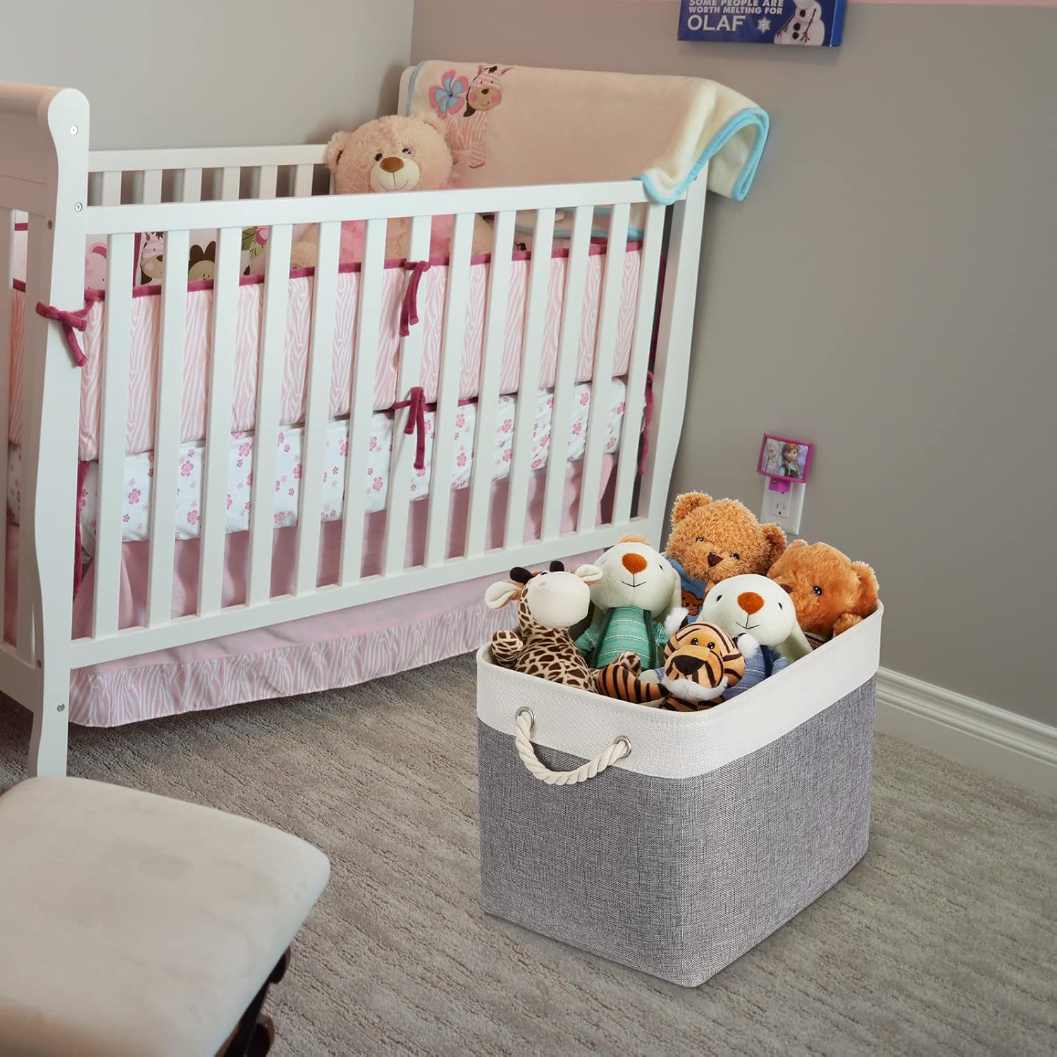 - EASY to CARRY: The storage basket comes with 2 sturdy rope handles for easy access and for portability. Soft handles that add a classic touch, and make these fabric storage baskets are sturdy and easy to grab and make it easy to carry or pull off and out of shelves