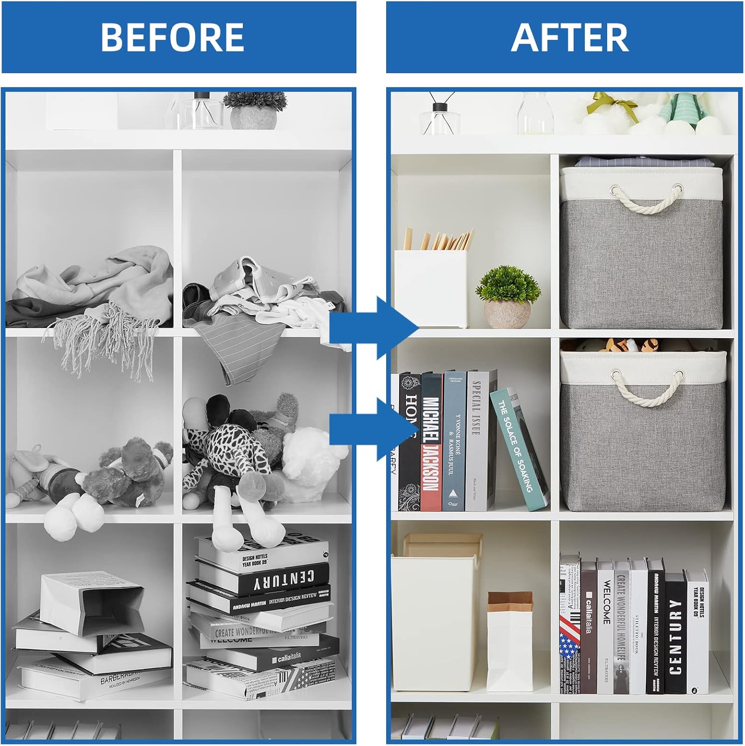- PRACTICAL STORAGE BINS: These fabric baskets are an excellent choice for keeping your space nice, tidy, and organized. Decorative basket ideal for living room, bedroom, utility room, room, craft room, playroom, closet, dorms, condos, laundry room, toilet, or even in the hallway. The basket set provides a perfect, lightweight way to accessorize, organize