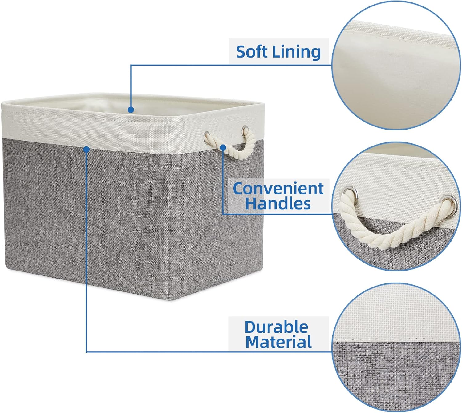 Temary Baskets for Organizing, 2 Pack Storage Baskets Large Fabric Baskets with Handles, Decorative Basket for Gifts Empty for Home (White&Grey,16Lx12Wx12H Inches)