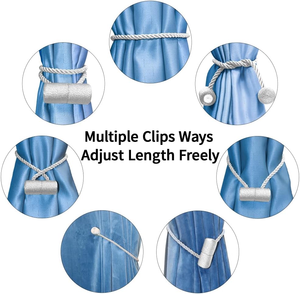 - "NEW STYL WIDE APPLICATION: The length and binding method can be adjusted freely according to the thickness of the curtain. It is widely used in curtains in different places such as bedroom, living room, dining room, bathroom, kitchen, office, courtyard and so on. suitable for all thick blackout curtains, shower curtains or thin sheer curtains.You can refer to the various tie backs methods shown on our pictures. "