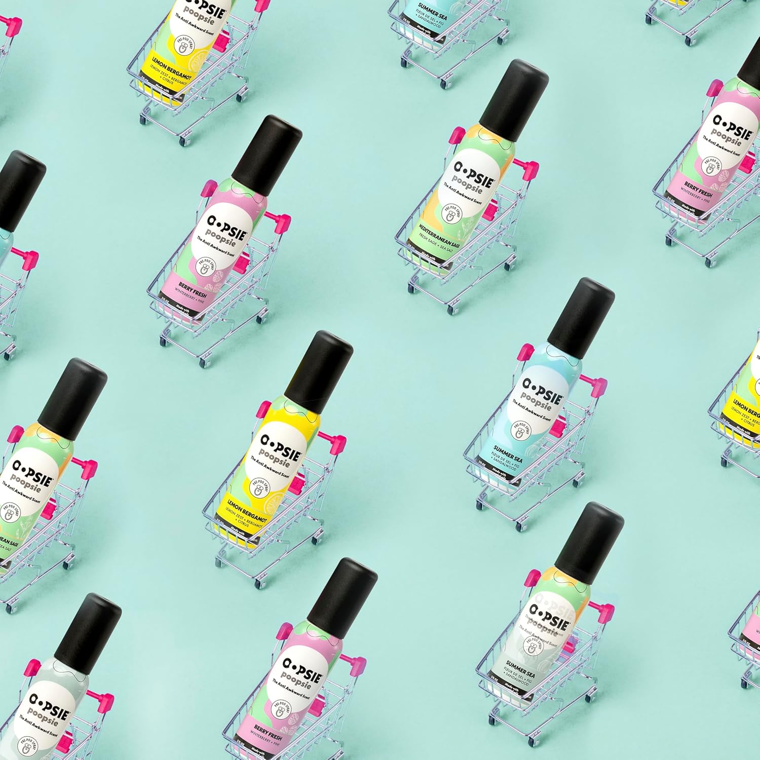 Oopsie Poopsie Pre GO toilet spray, discreet & portable original Pre-poo spray to use on the go. Assorted scents Lavender Scape/Summer Sea Toilet Odor Eliminator 2oz bottle Gift Set 2 pack