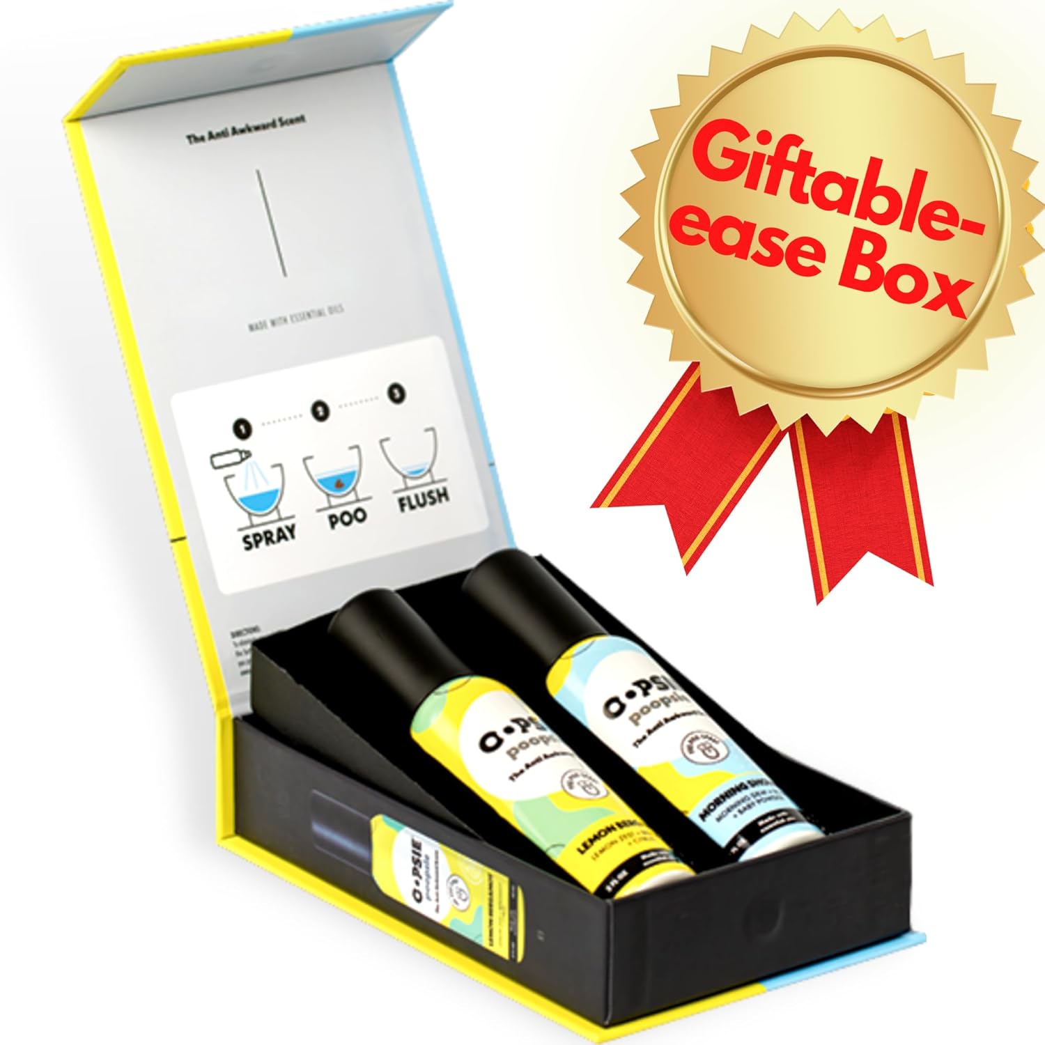 Oopsie Poopsie Pre GO toilet spray, discreet & portable original Pre-poo spray to use on the go. Assorted scents Lemon/Morning Shower Fresh Toilet Odor Eliminator 2oz bottle Gift Set 2 pack