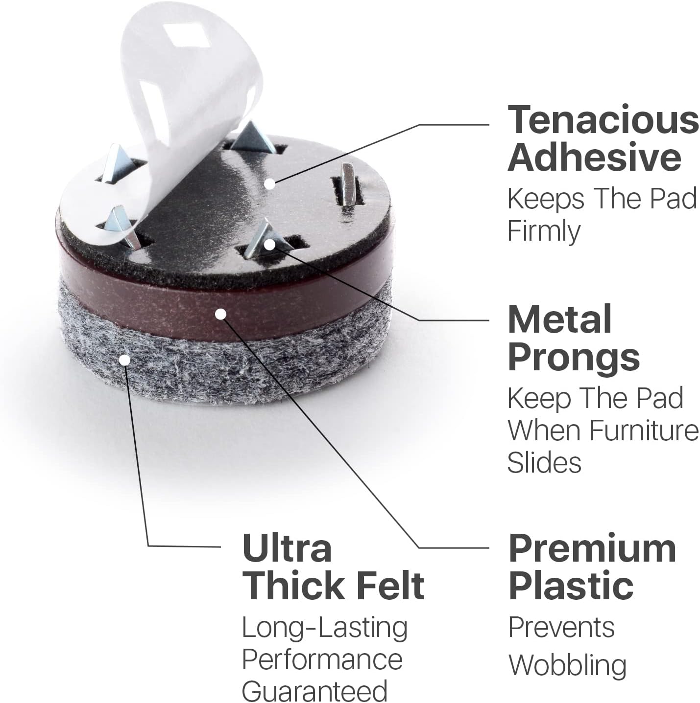 - ✌️ PREMIUM MATERIALS - 16 PCS Furniture Felt Pads consist of Thick Felt, Safe Plastic, Tenacious Adhesive, and Metal Prongs - THIS COMBINATION CREATES STRONG SHIELD BETWEEN FLOOR AND FURNITURE!