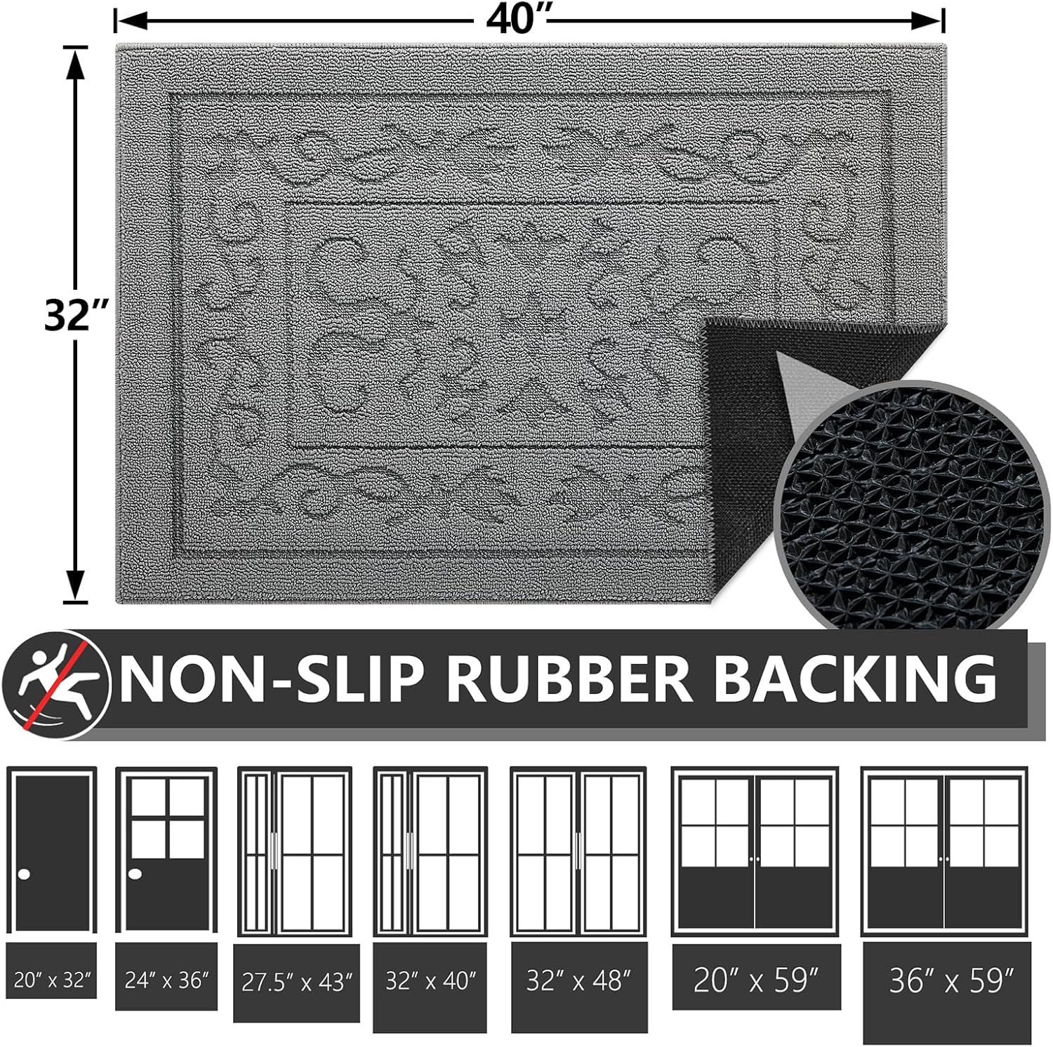 FONEYI Indoor Door Mat 32" x 40", Dirt Trapper Door Mats Non-Slip Entryway Rugs Washable, Absorbent Resist Dirt Welcome Mat, Low Profile Inside Floor Mats for Front Back Door and Entryway, Light Grey