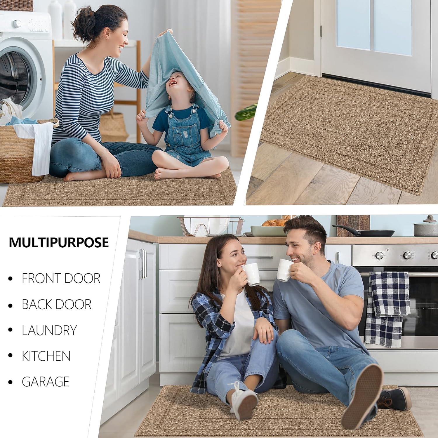 - TRAP DIRT AND MOISTURE EFFICIENTLY: Our indoor door mat is designed to keep your home clean by trapping dirt and moisture right at the entrance. Made from premium Polypropylene with dense yarns, this door mat quickly scrapes dirt off shoes, ensuring your floors remain dry and spotless. Keeping the floors clean and dry. Widely used in any weather, especially rainy, snowy or muddy weather. Suitable for front door, back door, entryway, indoor entrance, etc