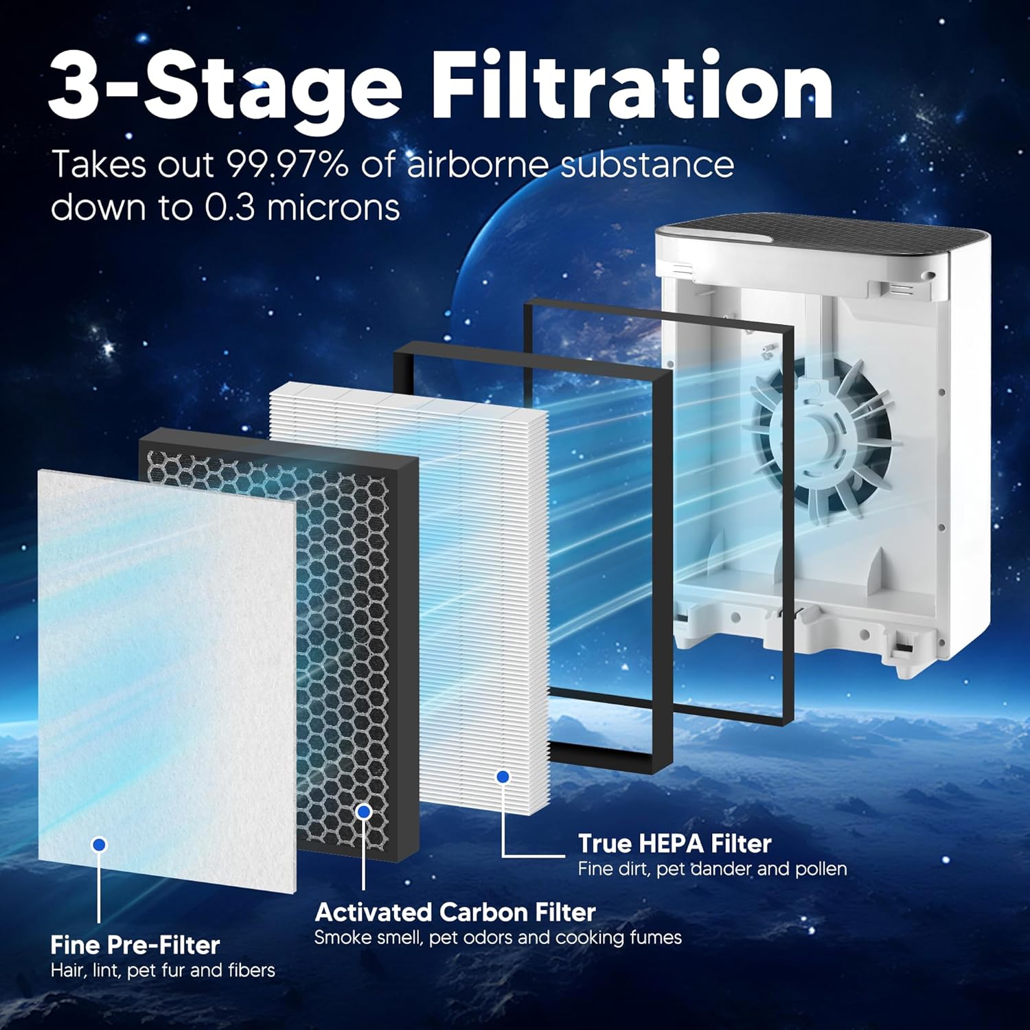 - Material : 3-in-1 True HEPA and High-Efficiency Activated Carbon Filters Set