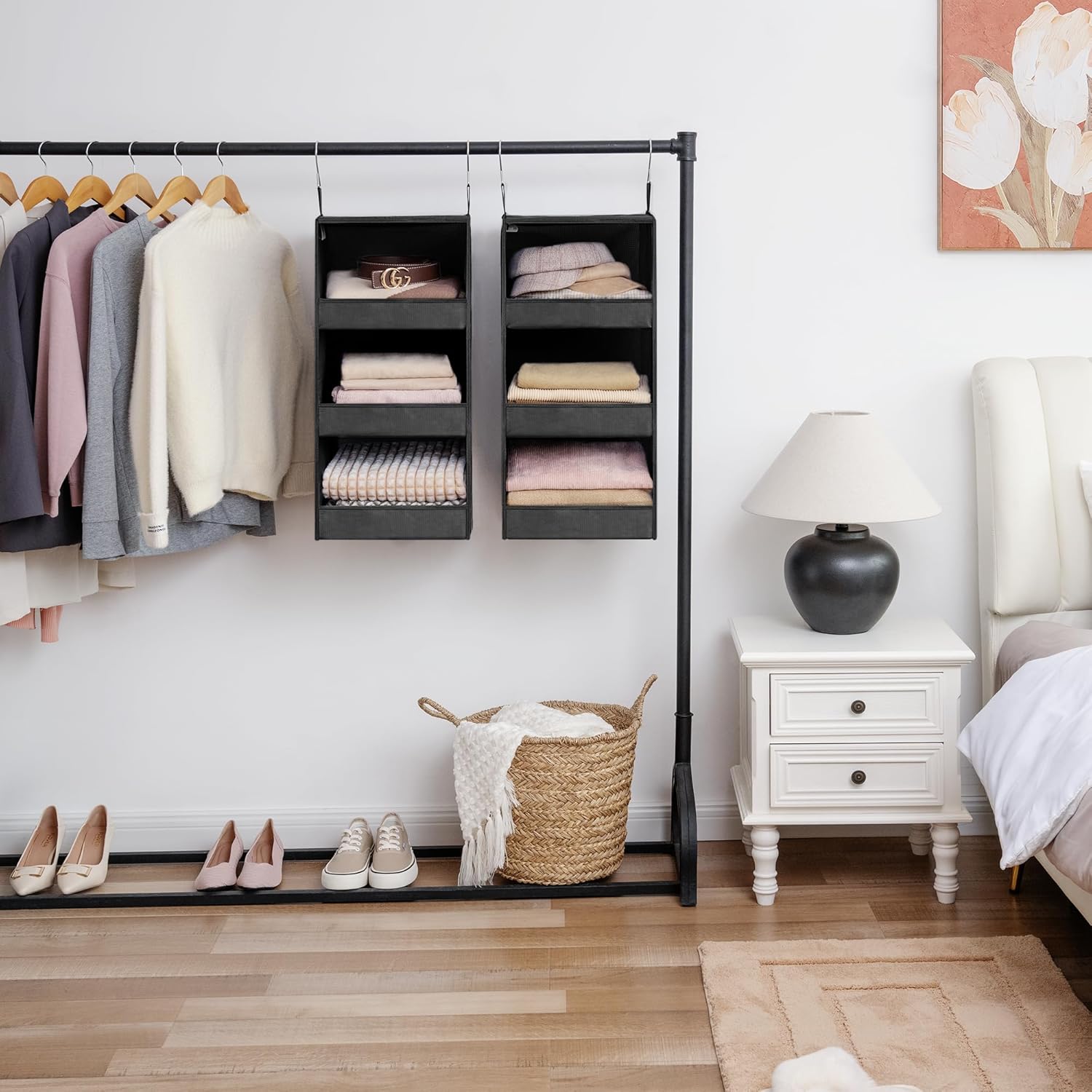 GRANNY SAYS Hanging Closet Shelf, 3-Shelf Foldable Hanging Organizers and Storage, Hanging Organizer for Camper Organization, Black, 2-Pack
