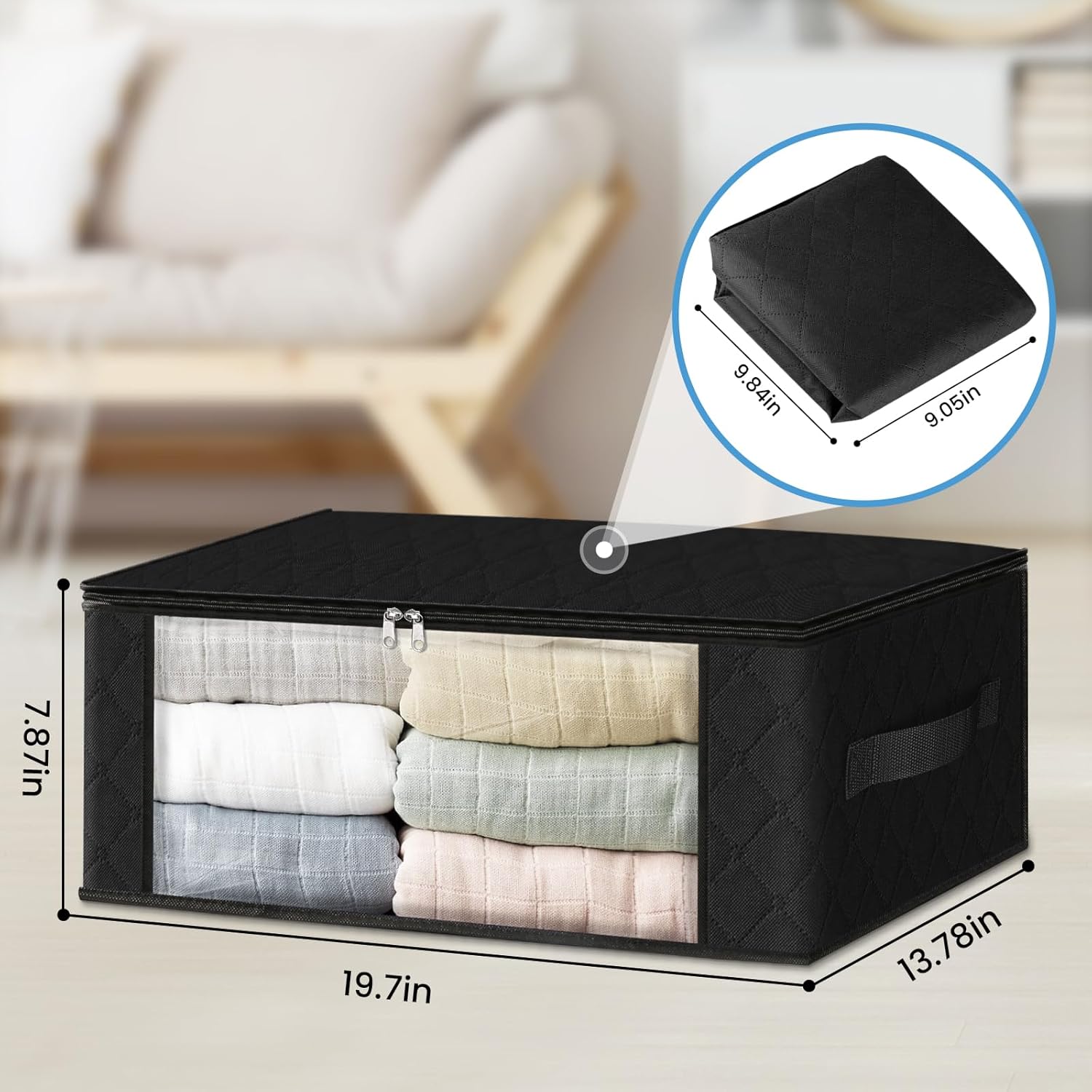 HomeHacks 6-Pack Clothes Organizer Storage Bags Foldable Storage Box with Large Clear Window Sturdy Handles for Closet, Dorm, Pillows, Bedding, Clothes, Stuffed Toys, Blankets, 35L, Black