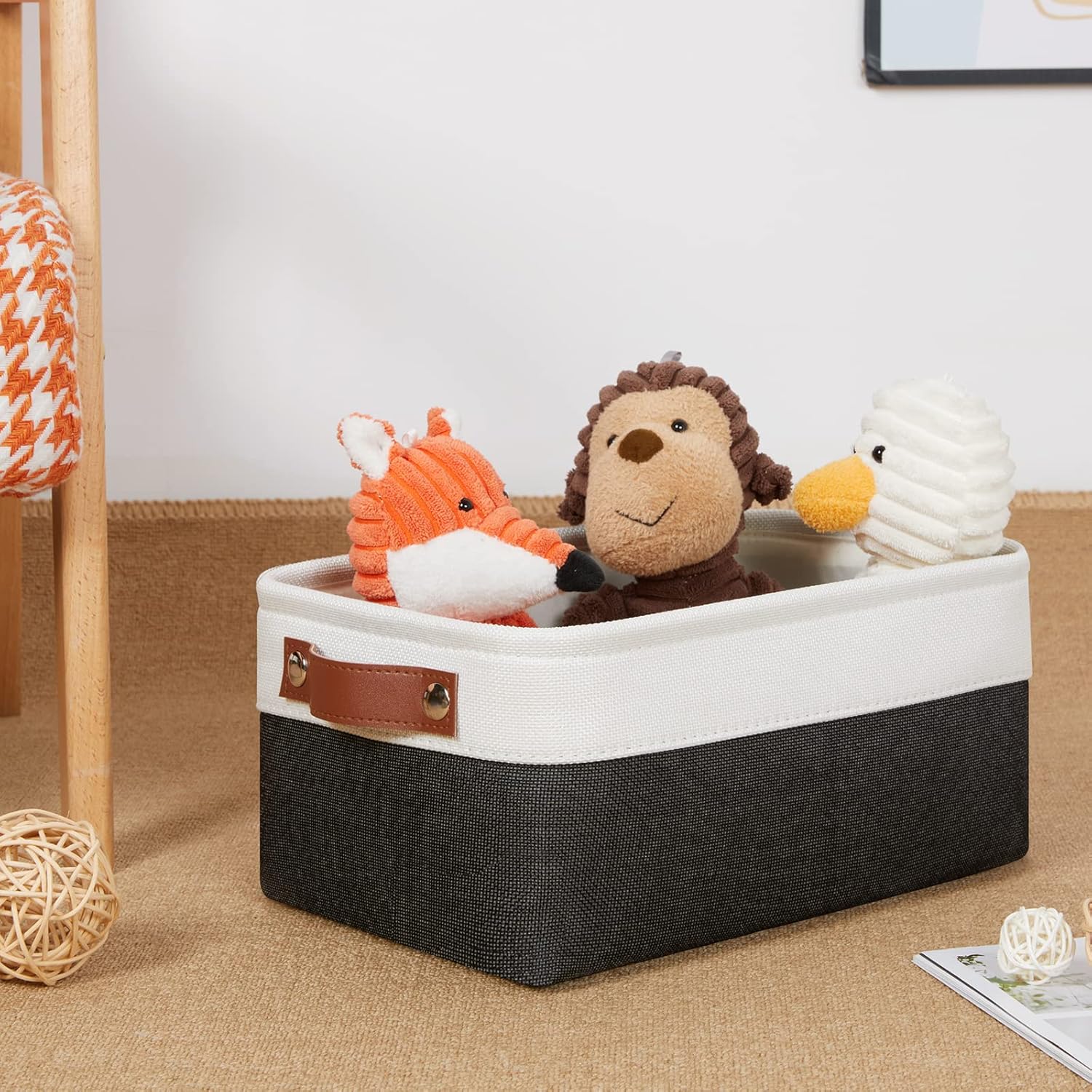 DULLEMELO Small Storage Baskets 6 Pack, Fabric Collapsible Gift Storage Baskets for Shelves, Closets, Nursery, Home, Office Organizing,Small Canvas Linen Rectangular Storage Bins (White&Black)