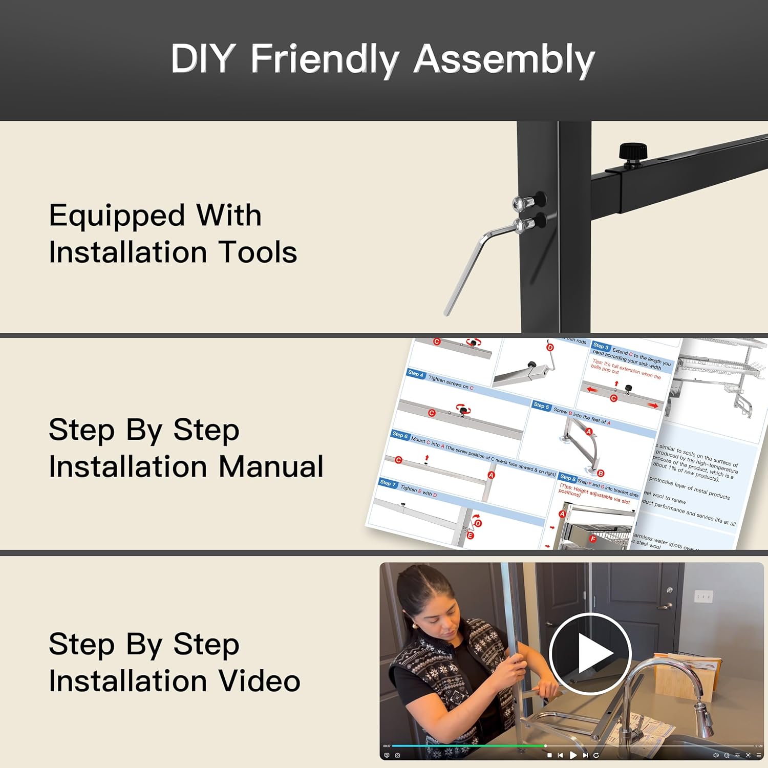 - 🧰 DIY Friendly Assembly with Tools: Includes a hex key and step by step visual guide for straightforward installation. Predrilled holes let you mount the sink dish drying rack horizontally above the sink without permanent alterations, perfect for renters or those avoiding wall damage. No technical skills required, assemble in minutes