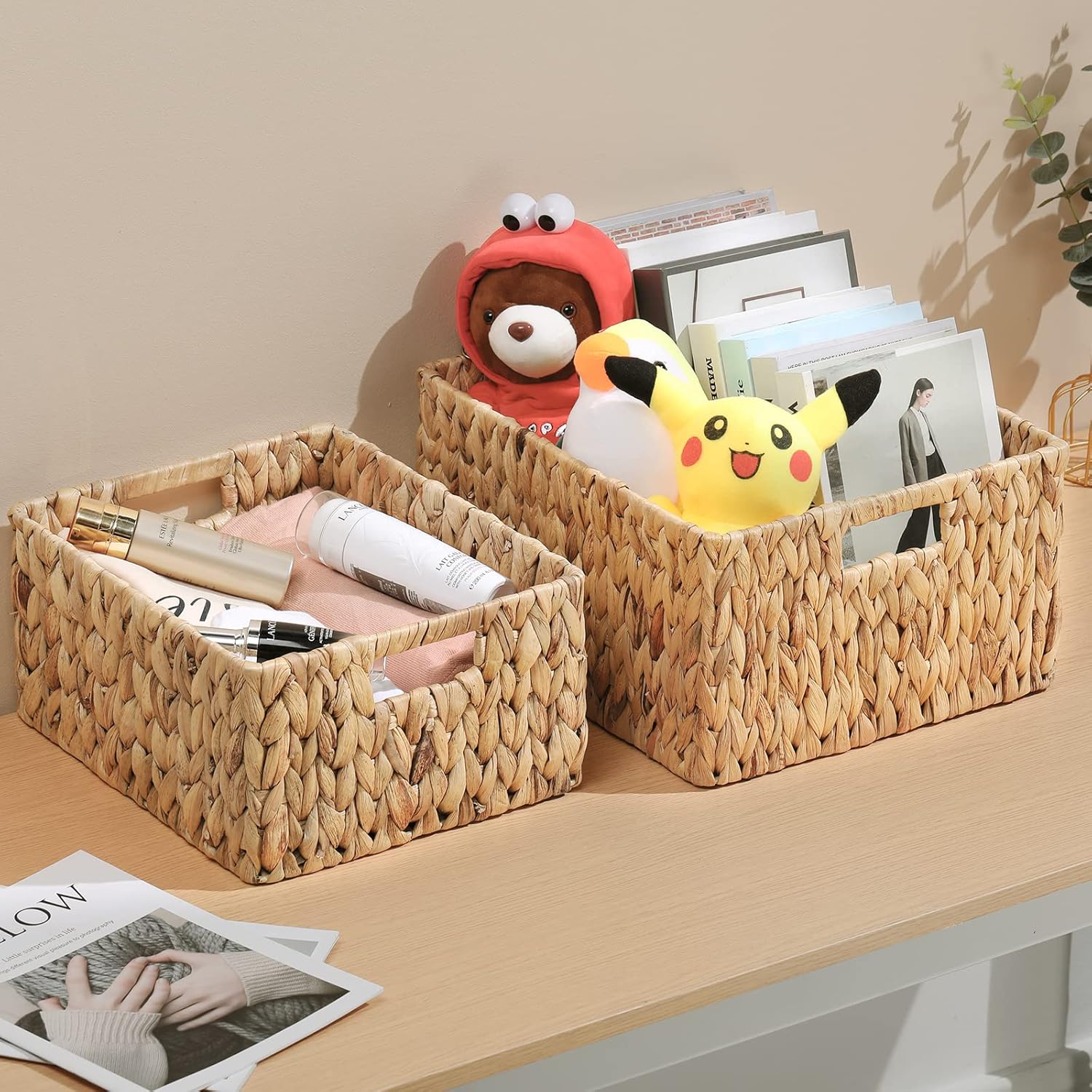- Natural and Sustainable: these storage baskets for shelves are made of natural water hyacinth in a woven pattern, the material is natural and friendly to the environment.