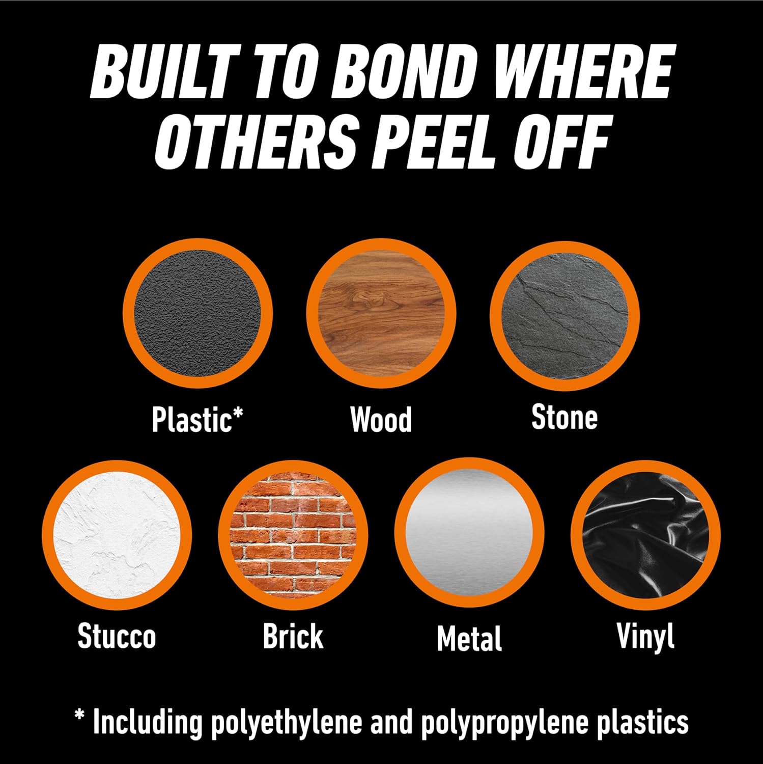 - Gorilla tough: This heavy duty tape has a low tack, strong adhesive that resists drying, cracking, and peeling caused by sunlight, heat, cold, and moisture