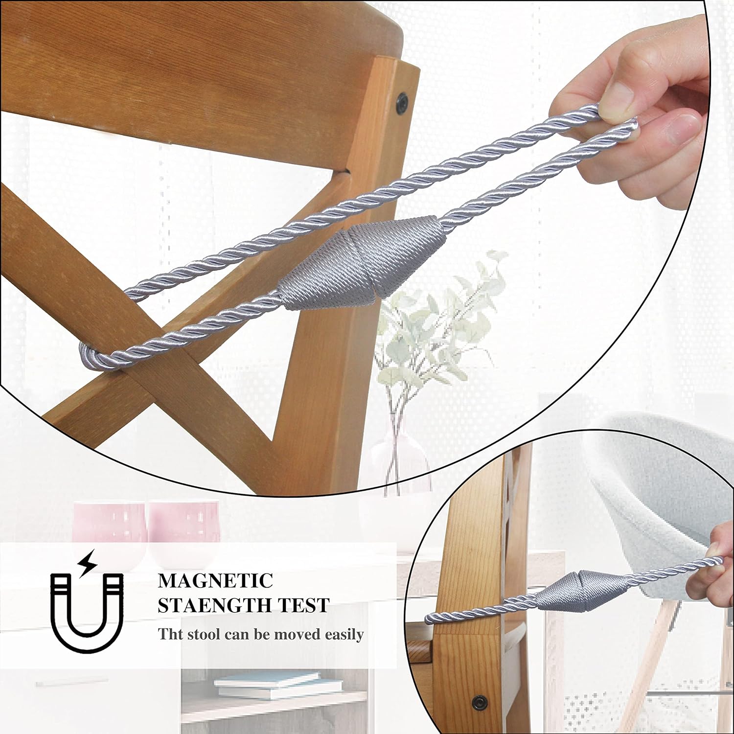 2 Pack Magnetic Curtain Tiebacks Rope Modern Handmade Curtain Tie Backs Decorative Drapes Weave Holdbacks for Window Décor, Grey