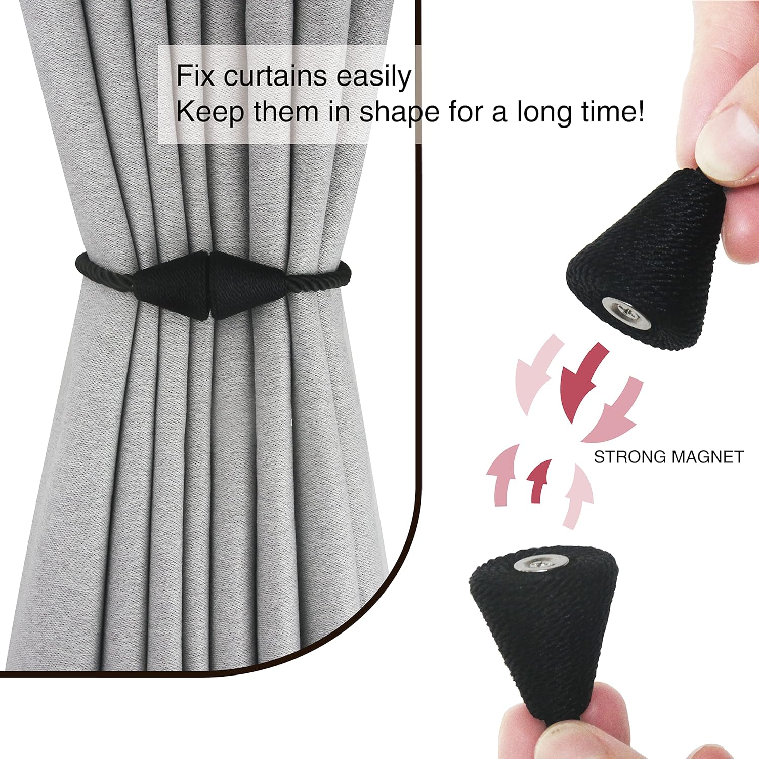 - Easy To Use- You can use different binding methods according to your preferences. The magnets are strong enough to keep holding the curtain. Conical shape curtain tiebacks adding a modern beauty to your windows.
