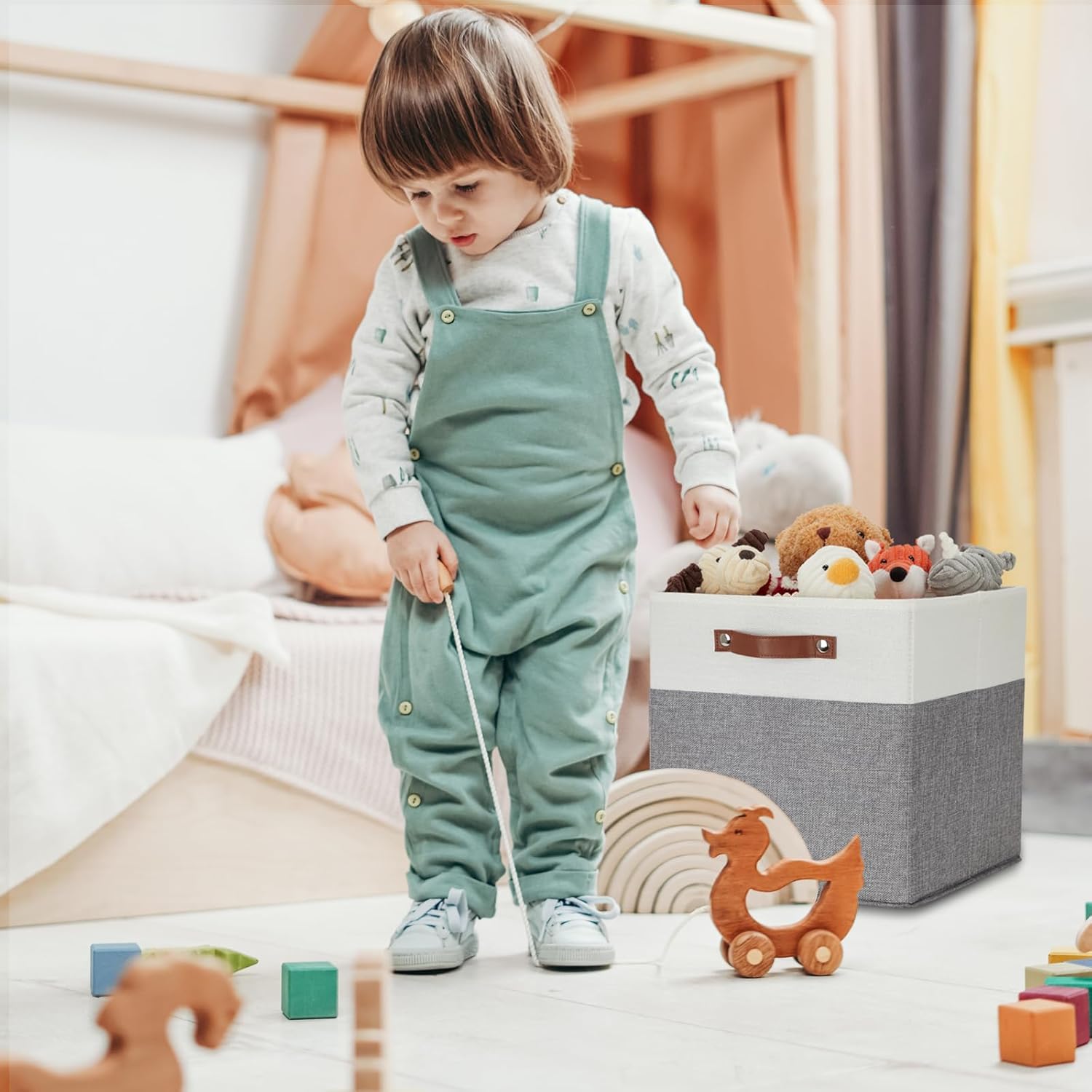 DULLEMELO Storage Cubes 13 inch, Collapsible Sturdy Cube Storage Bins With Handles for Organizing,Fabric Storage Baskets for Shelves Nursery Closet Home Organization (White&Grey-4 Pack)