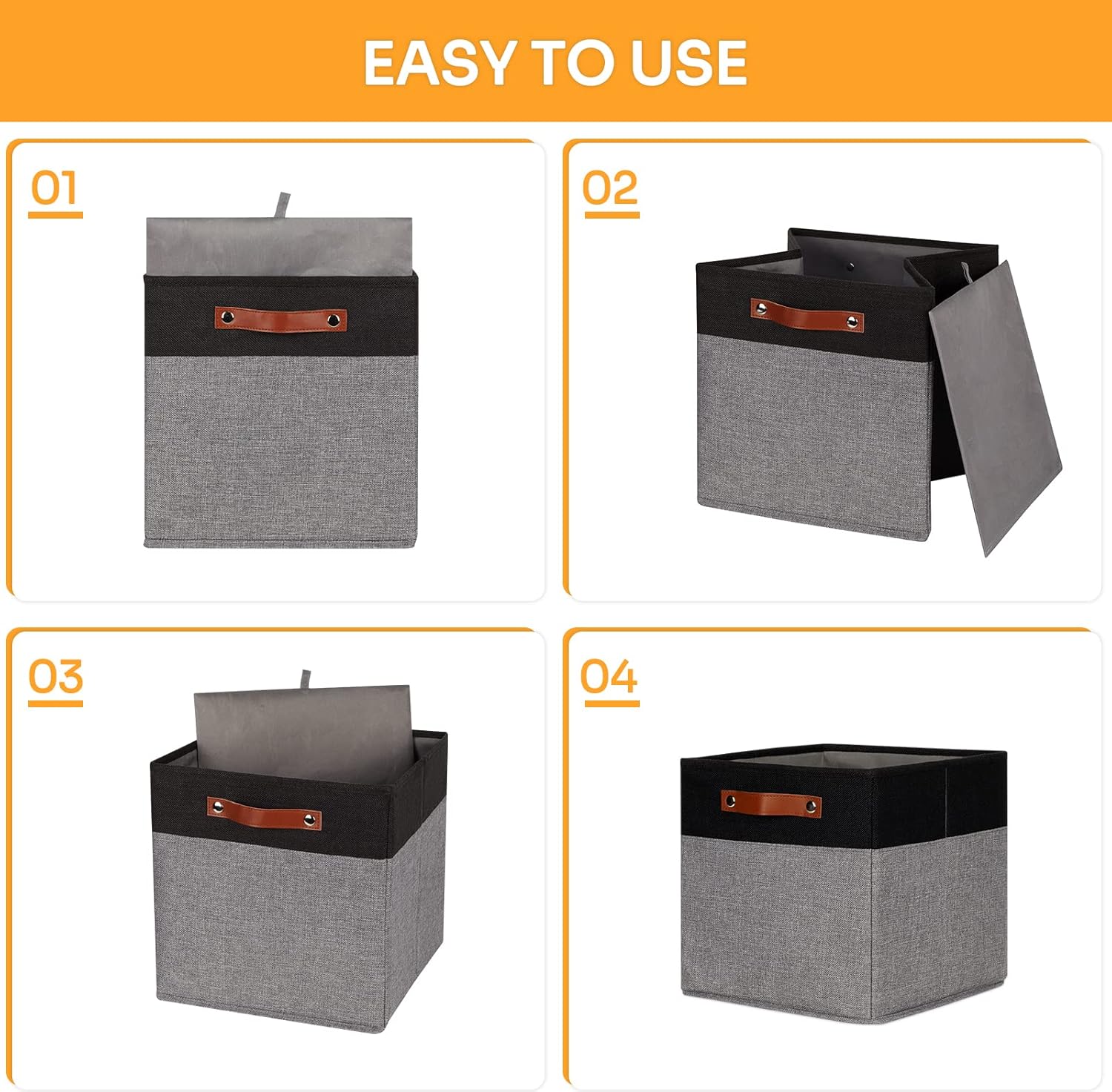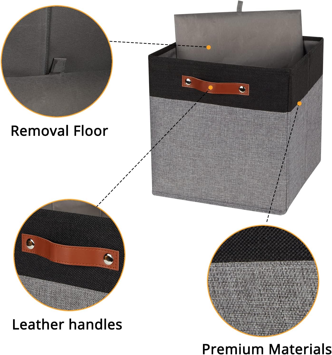 DULLEMELO 12x12 Storage Cubes, Collapsible Sturdy Cube Storage Bins With Handles for Organizing,Fabric Storage Cubes Baskets for Shelves Nursery Closet Home Organization and Storage (Black&Grey)