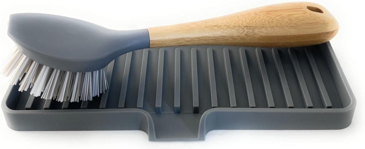 - A More Hygienic Home | A dedicated space for your dishwashing supplies, bathroom sink items, shower niche/shelf items. Tray and drain chute are slightly sloped to help funnel excess water away.Thick, sturdy base stays in place without suction while raised lines promote air flow, so items dry faster and are less prone to developing nasty odors.