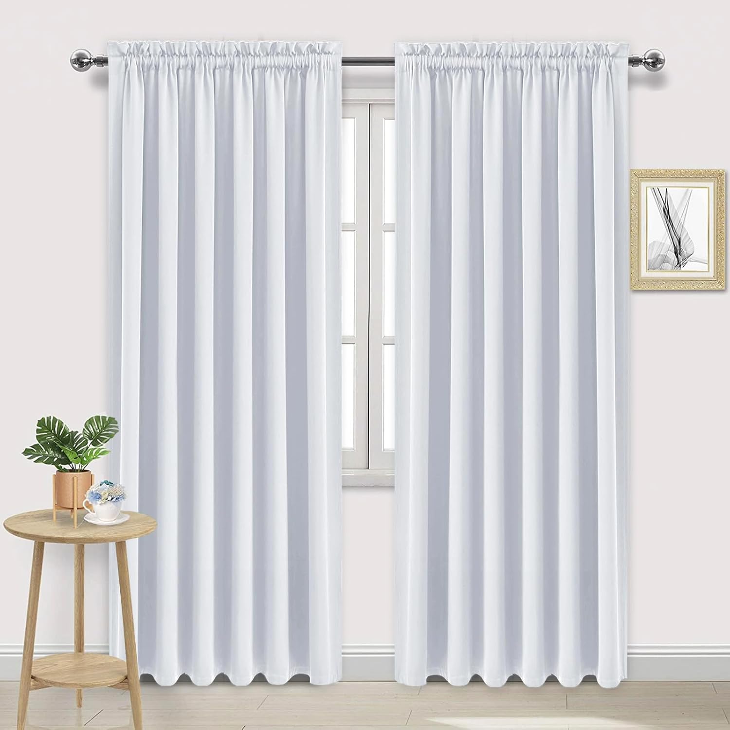 DWCN White Room Darkening Curtains for Bedroom, 60 x 84 inches Long - Energy Saving Privacy Window Drapes, Set of 2 Rod Pocket Curtain Panels