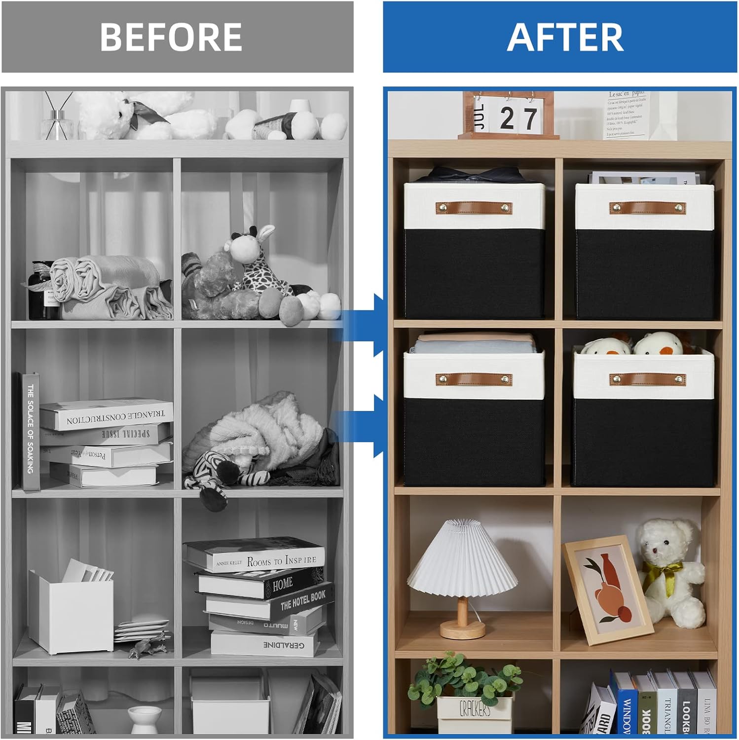 - PREMIUM MATERIAL: Our cube organizer bins are made of sturdy fabric & soft lining, thicken cardboard lined into let the cubes storage bins look perfect. Sturdy and high-quality material makes these foldable storage cubes can hold heavy stuff and last a longer lifespan.