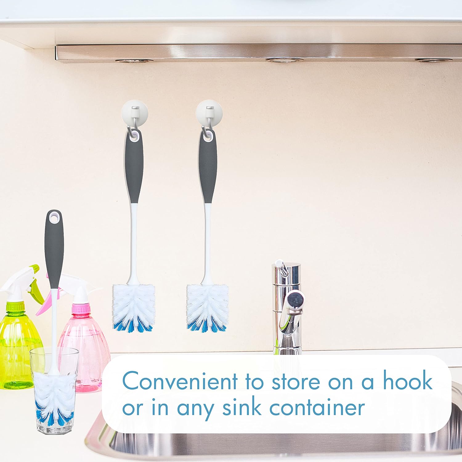 PHYEX 2 Pack Long Handle Bottle Scrubbing Brushes, Bottle Cleaner for Washing Glasswares, Wine Decanter, Hydro Flask Tumbler, Sinks, Food Jars